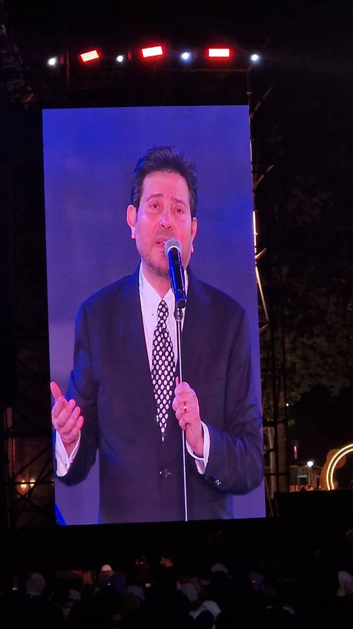 وكان شاكر قد استهل فقرته بأغنية "بلدي" وسط تصفيق حار من الحضور، قبل أن يقدم باقة من أجمل أغانيه القديمة والجديدة بمصاحبة المايسترو مصطفى حلمي وفرقته الموسيقية، في أجواء طربية راقية عكست مكانته الفنية الكبيرة ومحبة الجمهور له.