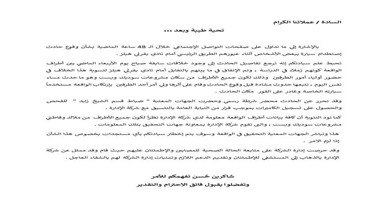 وأضاف البيان أن الشركة تتابع الحالة الصحية للمصابين عن قرب، حيث توجه وفد ممثل عنها إلى المستشفى للاطمئنان عليهم وتقديم الدعم اللازم، مؤكدًا أن التحقيقات لا تزال جارية لكشف كافة ملابسات الحادث ومحاسبة المتسببين فيه.