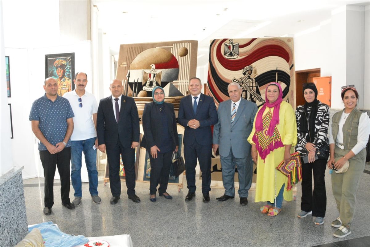 وعقب انتهاء العرض، افتتح رئيس الجامعة المعرض الفني لطلاب كليتي الفنون التطبيقية والتربية النوعية، الذي ضم مجموعة من اللوحات الفنية والمجسمات اليدوية التي جسدت انتصارات أكتوبر المجيدة وروح الفداء والانتماء للوطن، حيث أشاد سيادته بمستوى الأعمال المعروضة وبإبداع الطلاب الذين عبّروا عن رؤيتهم الفنية لتاريخ مصر البطولي.