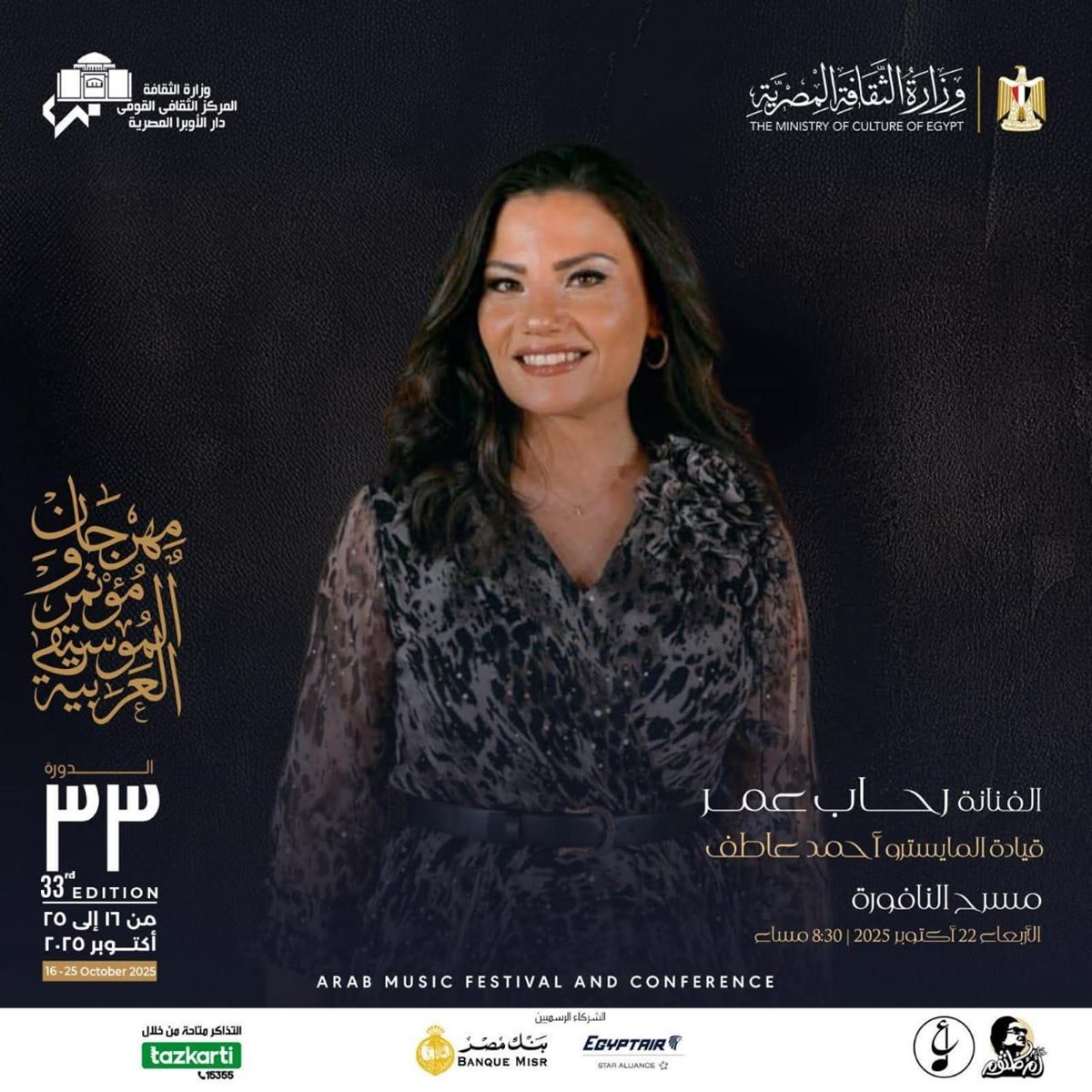 تتواصل فعاليات مهرجان ومؤتمر الموسيقى العربية 33 الذى تقيمه وزارة الثقافة عبر دار الأوبرا المصرية برئاسة الدكتور علاء عبد السلام ويديره المايسترو تامر غنيم ونائبه المايسترو الدكتور محمد الموجى بإشراف أمانى السعيد مستشار رئيس الأوبرا حيث يقام فى التاسعة مساء الأربعاء 22 اكتوبر حفلا على مسرح النافورة للنجم على الحجار بمصاحبة الفرقة الموسيقية بقيادة المايسترو أحمد عاطف يضم باقة من أعماله الغنائية الشهيرة إلى جانب مجموعة من مؤلفات عمالقة زمن الفن الجميل، ويسبقه فاصلاً غنائياً لنجوم الاوبرا نهى حافظ ، نهاد فتحى ، رحاب عمر ومحمد الطوخى .
