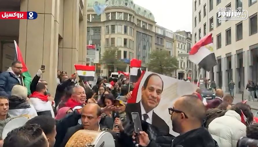 ازدانت شوارع العاصمة البلجيكية بالأعلام المصرية وصور الرئيس، وسط هتافات قوية من أبناء الجالية الذين حرصوا على التعبير عن دعمهم وحبهم للوطن.