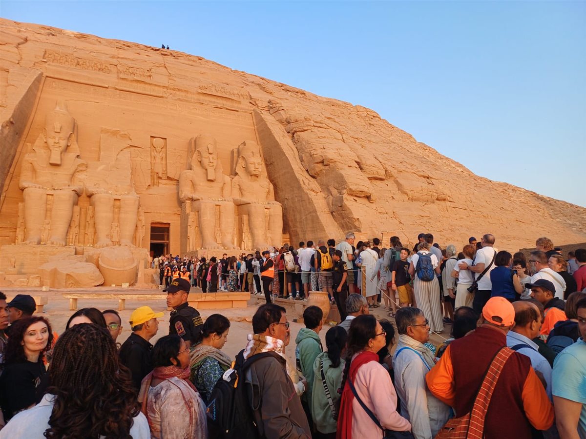 آلاف السائحين يشاهدون ظاهرة تعامد الشمس على وجه رمسيس الثاني في معبد أبو سمبل