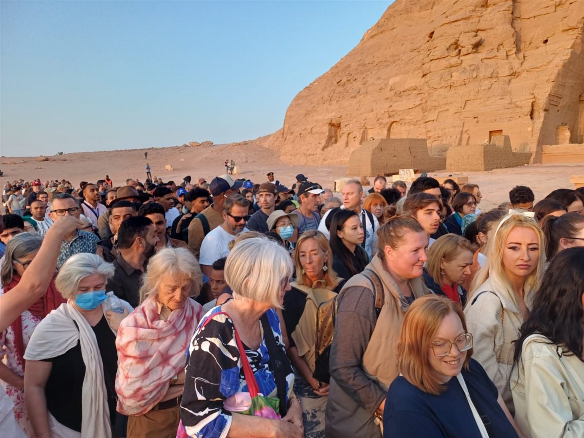 اصطف آلاف السائحين فى أطول طابور سياحى أمام معبد أبوسمبل لمتابعة ظاهرة تعامد الشمس، واحدة من الأحداث الفلكية الفريدة التى لا تتكرر إلا مرتين كل عام 22 أكتوبر و22 فبراير.