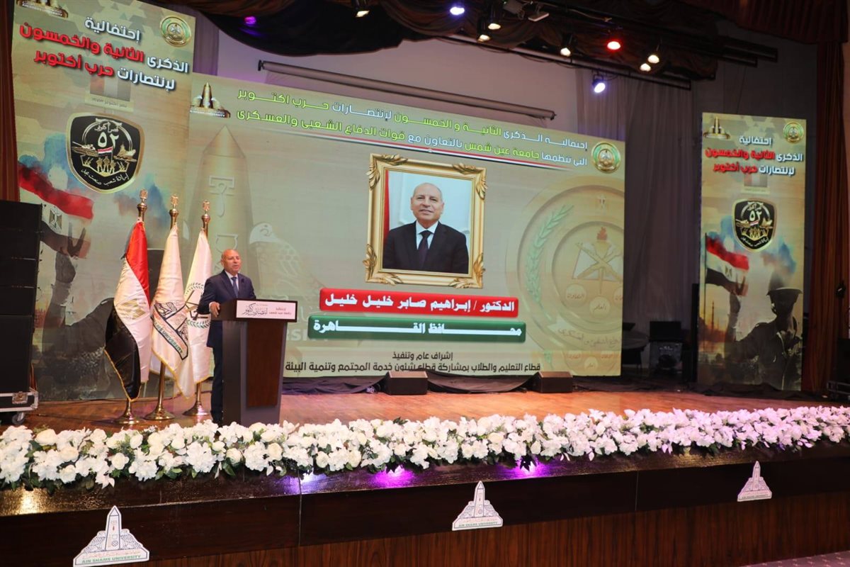 محافظ القاهرة يشارك فى الاحتفال بذكرى النصر الـ 52 مع جامعة عين شمس