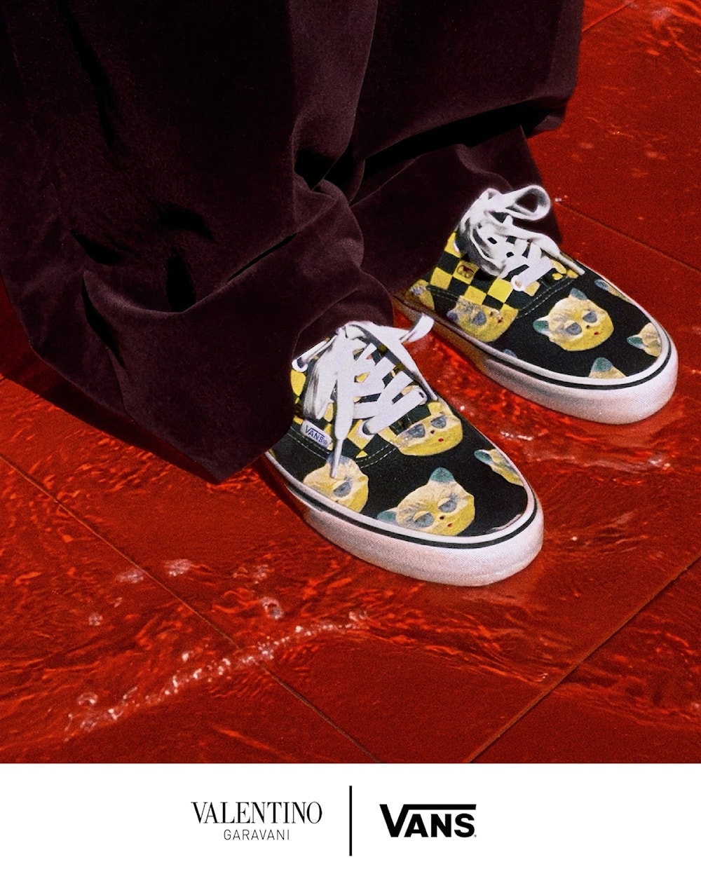 الأحذية صُمّمت على طراز «فانز» الكلاسيكي الذي تعود جذوره إلى عام 1966، وجاءت بستة تدرّجات تناسب النساء والرجال. ومن أبرز التصاميم حذاء مزيّن بعبارة I ❤︎ Vans، وآخر بنقشة الشطرنج الشهيرة، بالإضافة إلى إصدار خاص يحمل نقشة القطّة المميّزة لـ «فالنتينو».