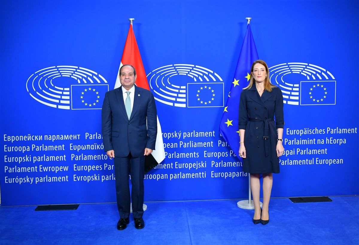 في إطار زيارته لبروكسل.. الرئيس السيسي يجتمع برئيسة البرلمان الأوروبي