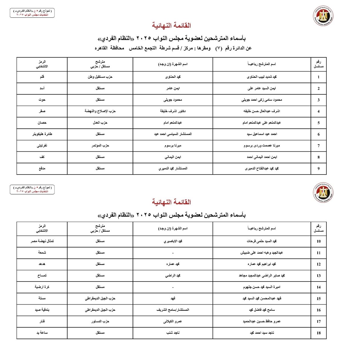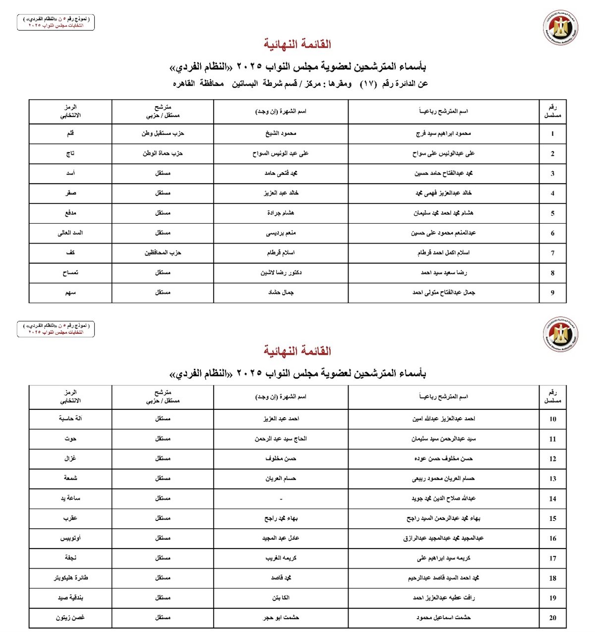 أسماء المترشحين بالنظام الفردي عن دوائر القاهرة في انتخابات النواب