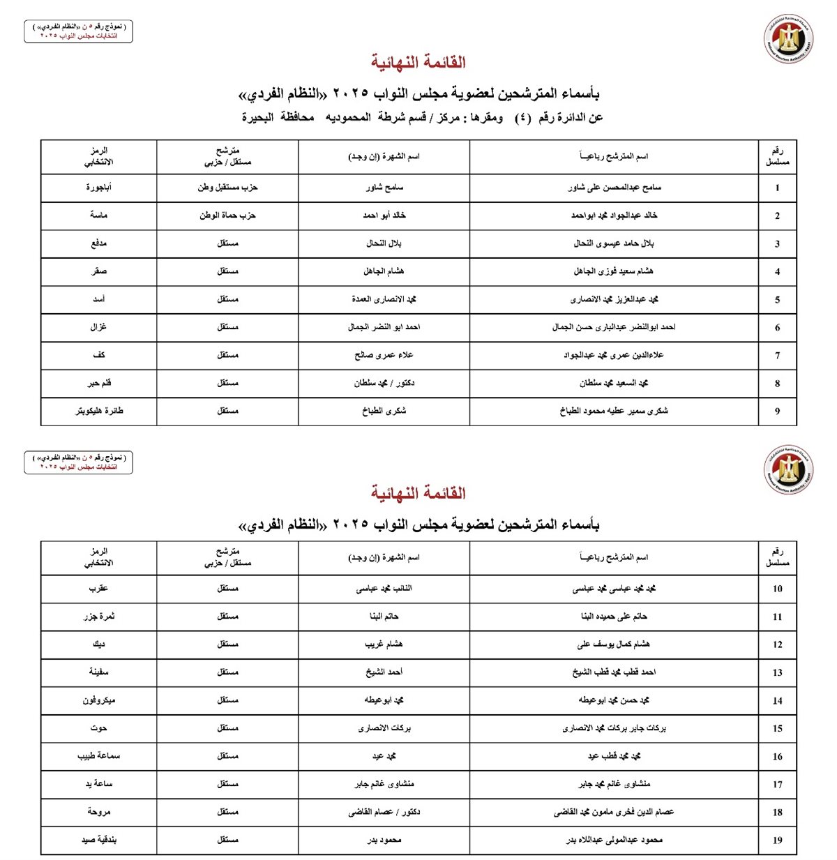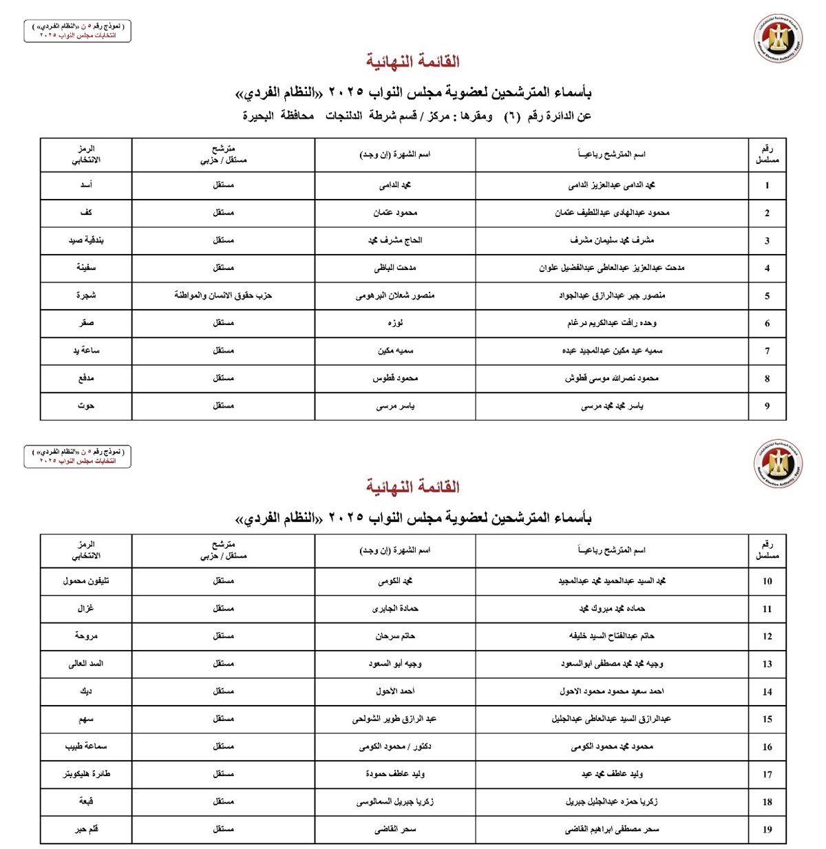 القائمة النهائية لمترشحي دوائر محافظة البحيرة عن النظام الفردي | الأسماء