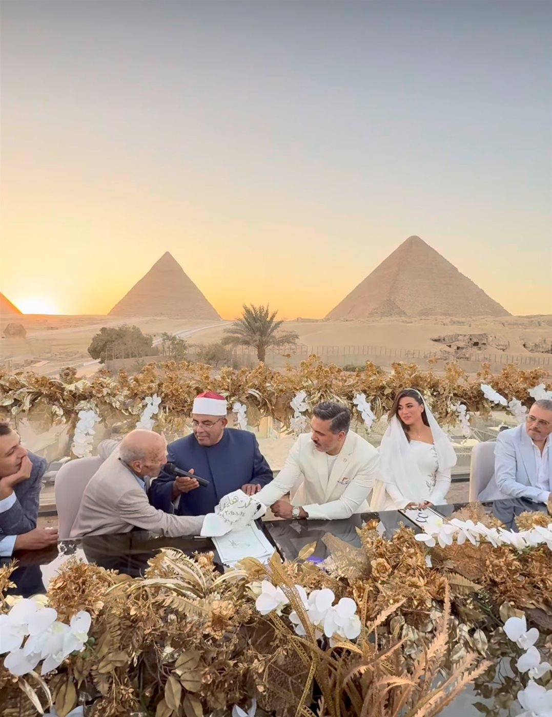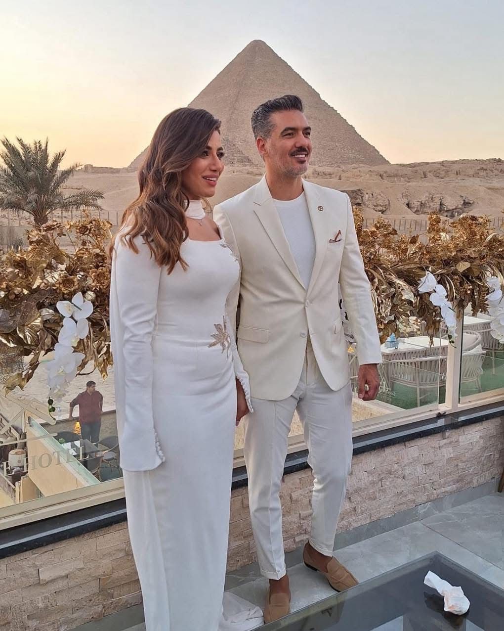 بإطلالة محتشمة وأنيقة.. هايدي موسى تحتفل بعقد قرانها من أمام الأهرامات