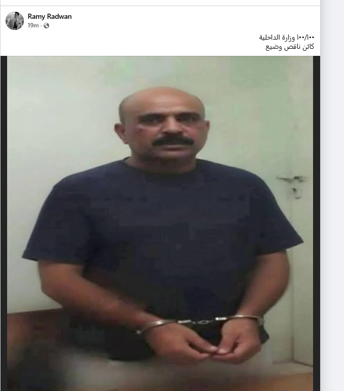 وقال رامي رضوان بعد نشره لصورة المسن عقب القبض عليه في تغريدة له من خلال حسابه عبر فيسبوك : “ عاش وزارة الداخلية .. كائن ناقص ووضيع ”.