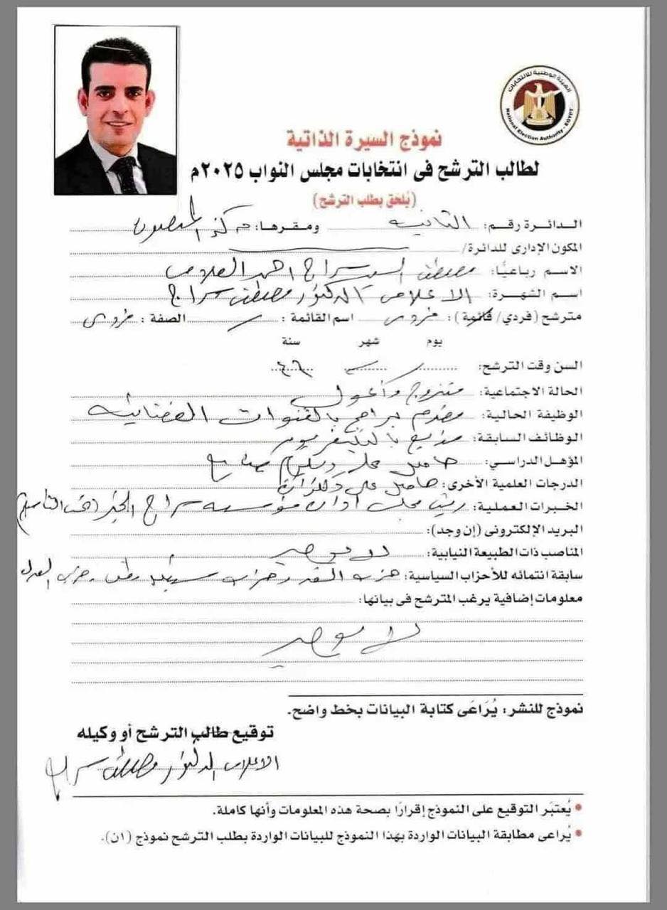 أثار الإعلامي مصطفى سراج أحمد العلام، جدلًا واسعًا بعد تقدمه بأوراق ترشحه لانتخابات مجلس النواب 2025 عن دائرة مركز المنصورة، وذلك عقب تداول صور استمارة ترشحه الرسمية الصادرة عن الهيئة الوطنية للانتخابات.