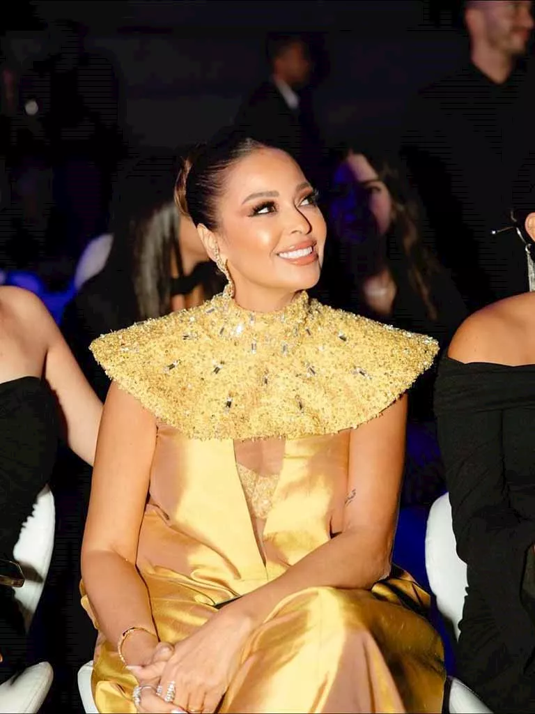 وارتدت داليا بفستان طويل باللون الذهبي مزينا بتطريزات من الأعلى، من تصميم "temraza".