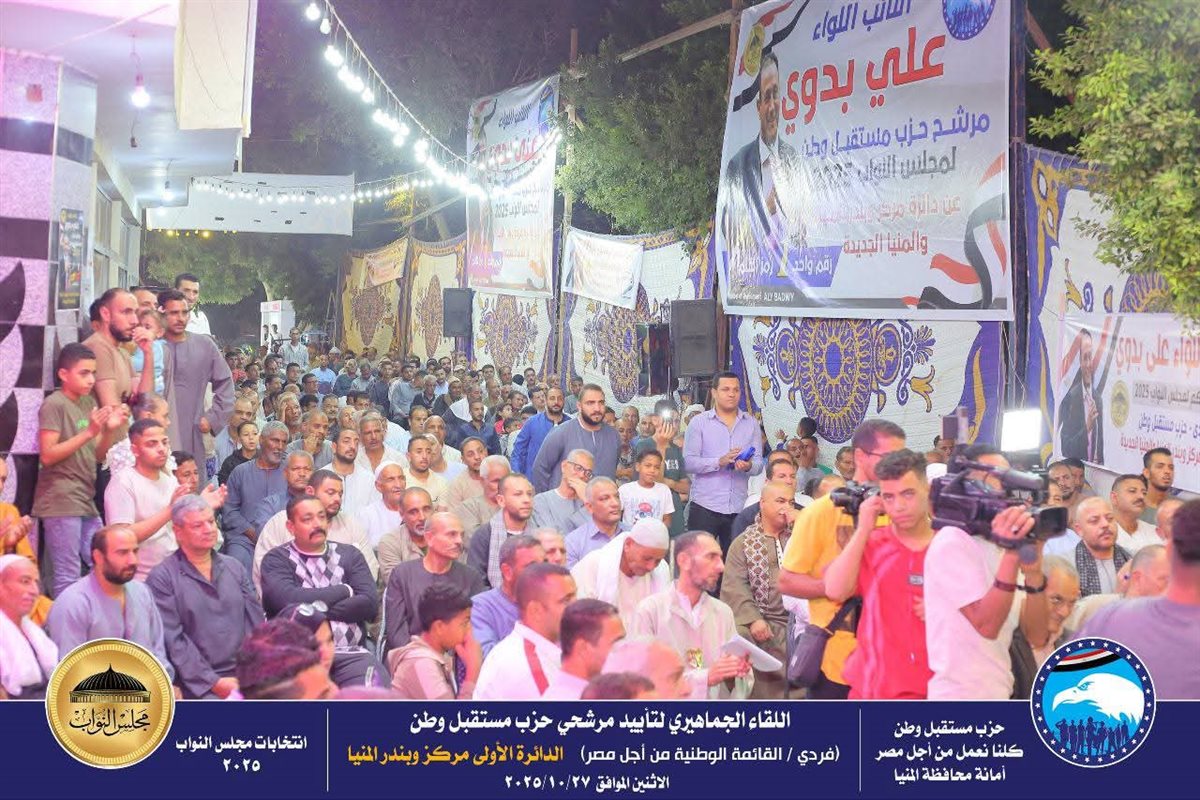 في إطار الإستعدادات للاستحقاقات الإنتخابية المقبلة، وتنفيذاً لخريطة اللقاءات الجماهيرية لدعم مرشحي حزب مستقبل وطن فردي والقائمة الوطنية من أجل مصر في إنتخابات مجلس النواب ٢٠٢٥ بكافة المراكز والأقسام، نظم حزب مستقبل وطن بمحافظة المنيا، مؤتمراً جماهيرياً موسعاً بمركز المنيا قرية عكاكا مجلس قروي بني محمد سلطان ، وذلك بحضور جماهيري كبير من أهالي القرية والقرى المجاورة، بهدف دعم مرشحي الحزب فردي و مرشحي القائمة الوطنية من أجل مصر.
