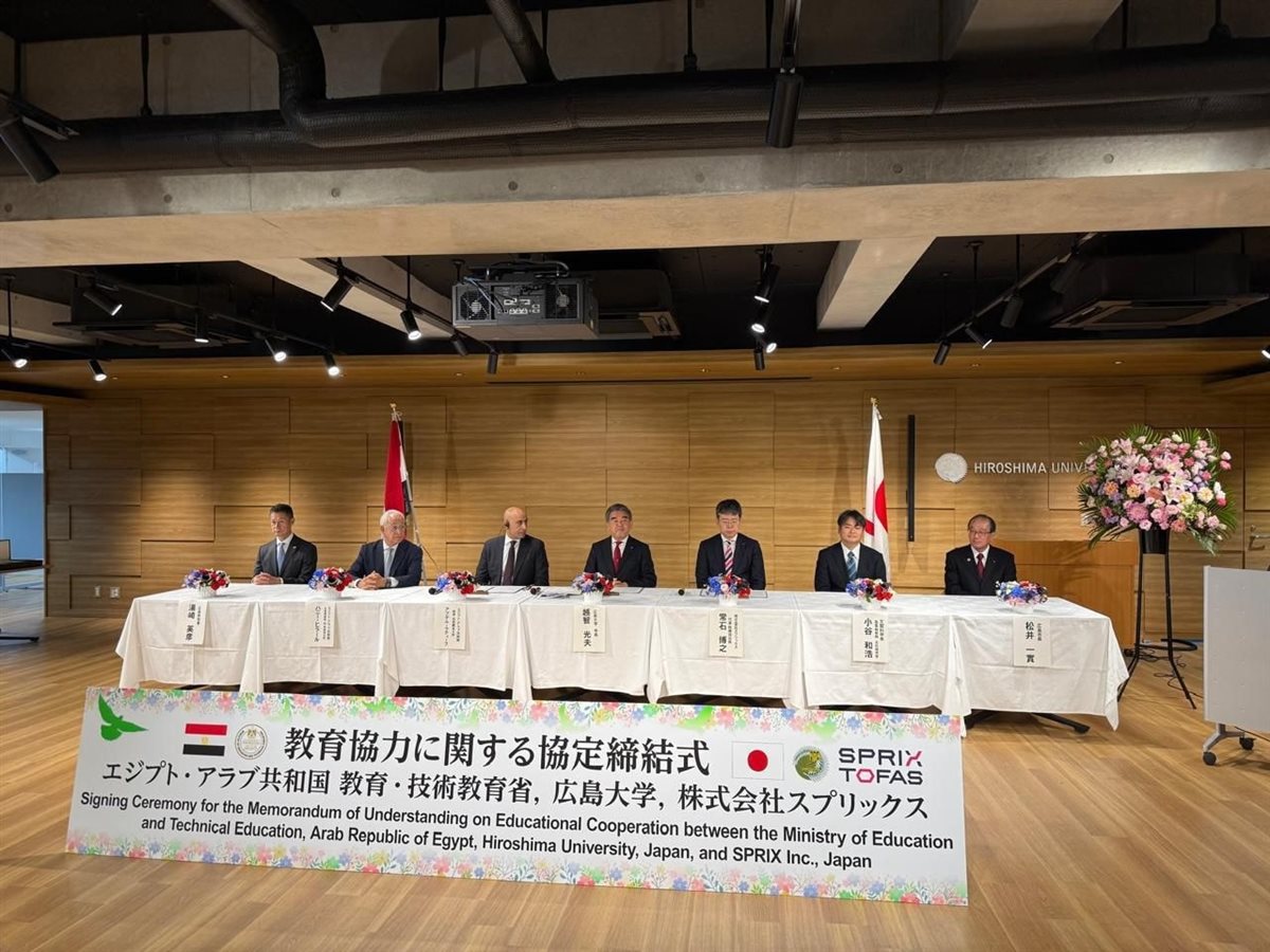 وقد وقع الاتفاق من جانب جامعة هيروشيما الحكومية اليابانية ميتسو أوتشي رئيس الجامعة، كما وقع من جانب مؤسسة "سبريكس" الرئيس التنفيذي للمؤسسة تسوني ايشي، وجاء ذلك بحضور الدكتور هاني هلال الأمين العام للشراكة المصرية اليابانية للتعليم.