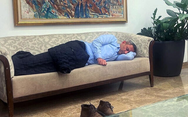 وادعى نتنياهو: "في الساعة 11:00 مساءً، أجريت محادثة سرية، واجتماعا مع شخصية من المنطقة، واستمرت المحادثة ساعتين. وخصصت ساعة أخرى لمناقشة الهجمات التي وقعت وتجري في الليل، وذهبت للنوم حوالي الساعة 4:00 صباحا، ونمت ساعتين ونصف، ما أشرحه لا يبدأ في وصف حجم العبء المتمثل في المهام السياسية والأمنية والاقتصادية والبرلمانية ومكتب رئيس الوزراء. أعتقد أننا سننتهي اليوم، على سبيل المثال، في الساعة الرابعة مساءً، وسأدخل في محادثات مع قواتنا وكذلك مع جهات أمريكية. أقدّر أنني سأنام مرة أخرى في الساعة 3:00 فجرا".