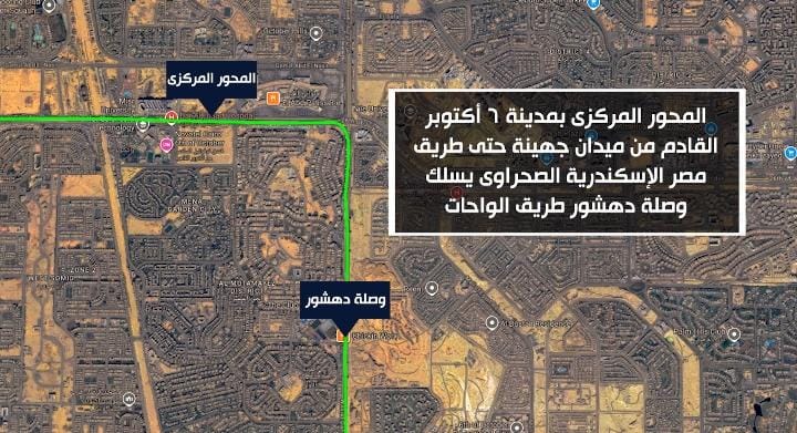 المحور المركزى بمدينة ٦أكتوبر: القادم من ميدان جهينه حتى طريق مصرالإسكندرية الصحراوى.. يسلك وصلة دهشور طريق الواحات.