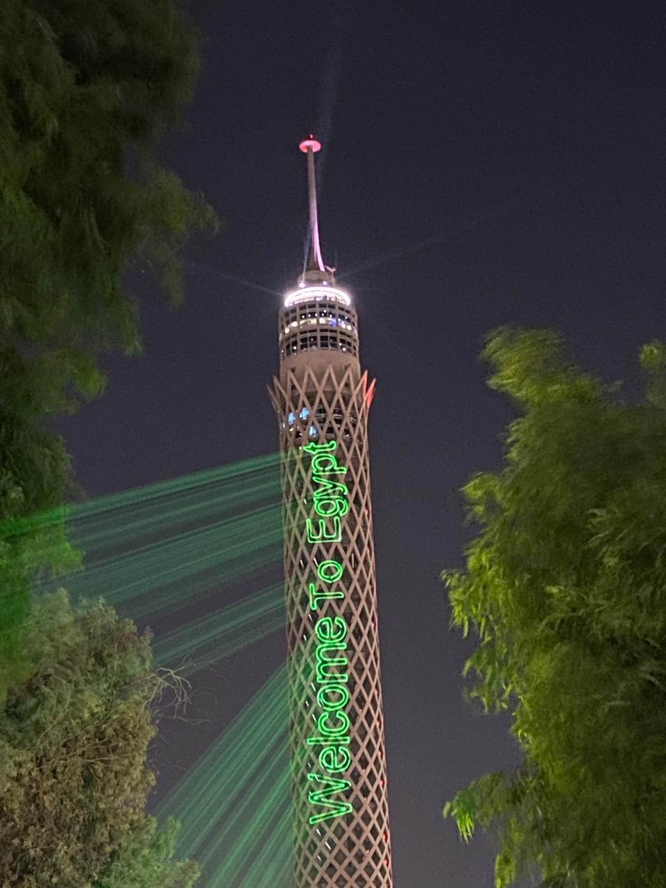 "مرحبًا بكم في مصر".. برج القاهرة يرحّب بضيوف العالم قبل افتتاح المتحف الكبير