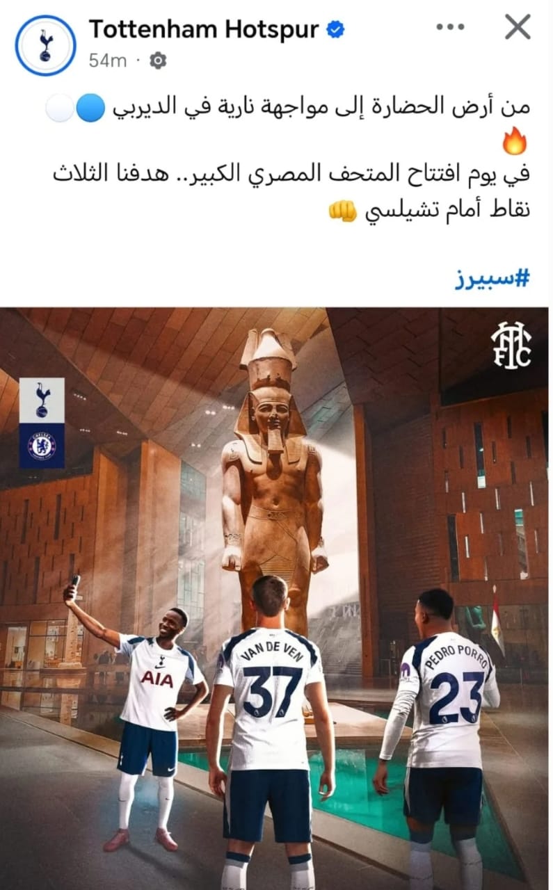 تحية من لندن إلى القاهرة.. فريق توتنهام يحتفل بالمتحف المصري الكبير