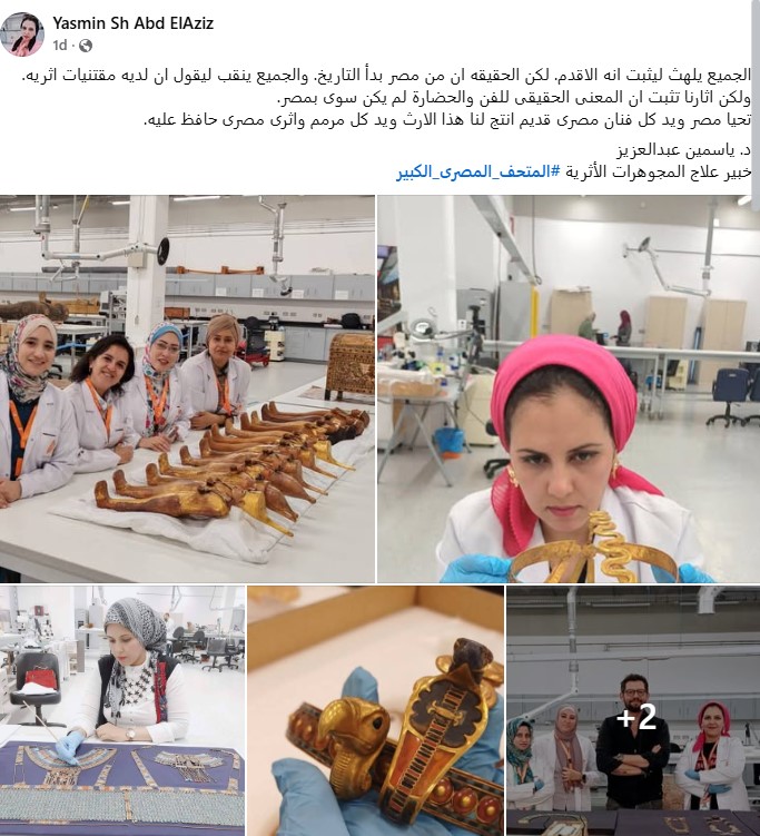 وأضافت خبيرة الآثار"تحيا مصر ويد كل فنان مصرى قديم انتج لنا هذا الارث ويد كل مرمم واثرى مصرى حافظ عليه".