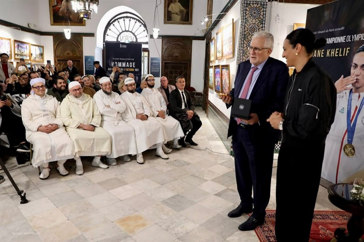 وقال حفيز في كلمته إن خليف "أظهرت صموداً وقدرة وتحدياً نادراً، وهي قيم أساسية في ديننا الإسلامي"، مضيفاً: "إنها نجمة جاءت لتضيء مسجد باريس. كنتِ فعلاً في المستوى ورفعتِ العلم الجزائري عالياً، رغم الضجة التي أحاطت بك، لكنك واجهتِها بشجاعة وكرامة".
