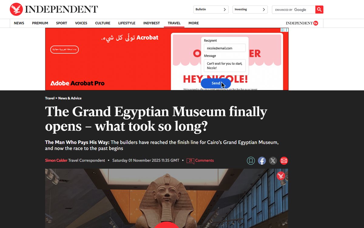 الإندبندنت البريطانية: المتحف المصري الكبير فخر إفريقيا الثقافي وهدية للعالم