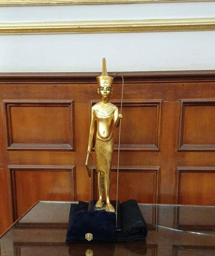 محافظ القاهرة يهدي محافظ طوكيو تمثال توت عنخ آمون بمناسبة افتتاح المتحف الكبير