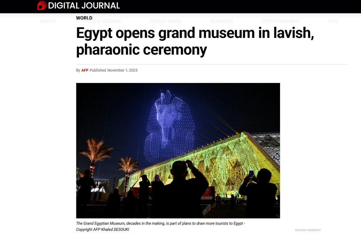 موقع digital journal: مصر تفتتح متحفها الكبير في احتفالية فرعونية فخمة