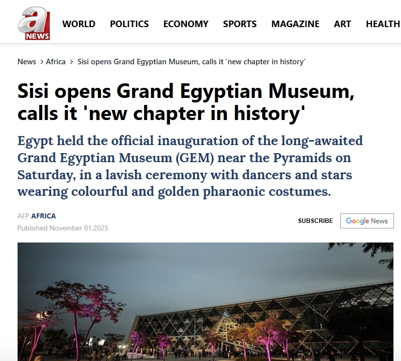 صحيفة a news التركية: السيسي يفتتح المتحف المصري الكبير.. فصل جديد في التاريخ