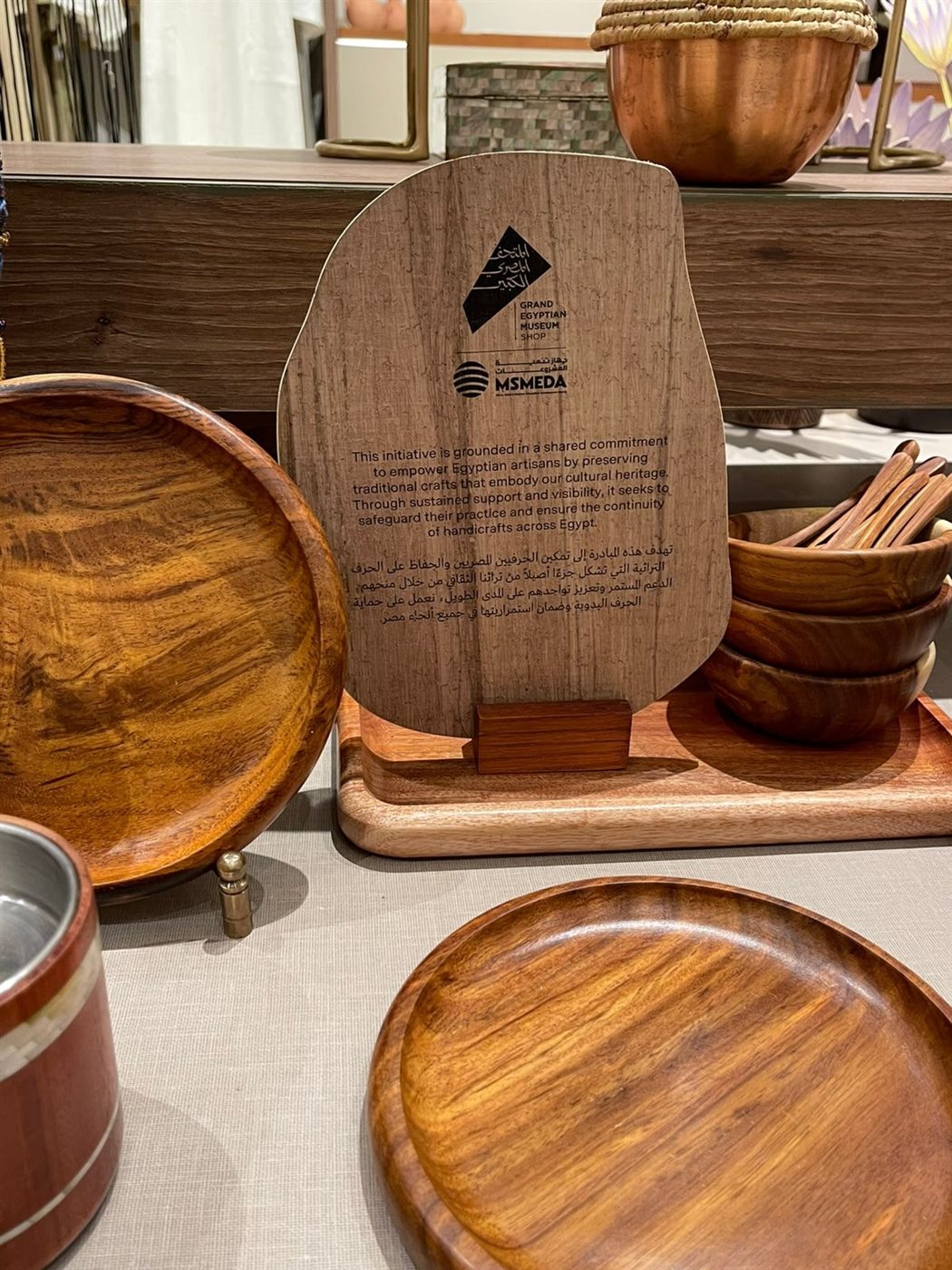 وصرح رحمي بأنه تزامنا مع فعاليات الاحتفال بالأفتتاح العالمي للمتحف المصري الكبير .. قام الجهاز بالتعاون مع بيت الهدايا - المتجر الرسمي للمتحف المصري الكبير .. بعرض مجموعة كبيرة و متميزة من المنتجات التراثية و الفنية الخاصة بالمبدعين و الفنانين من عملاء الجهاز اصحاب المشروعات المتوسطة و الصغيرة و ذلك ضمن فاعليات تنفيذ استراتيجية تطوير الحرف التراثية التي اطلقها الدكتور مصطفي مدبولي رئيس الوزراء و رئيس مجلس ادارة جهاز تنمية المشروعات بهدف تطوير المنتجات التراثية و التسويق لها دوليا من خلال عرضها بالمتجر الرسمي للمتحف المصري الكبير و العديد من التجمعات السياحية بمختلف محافظات الجمهورية.