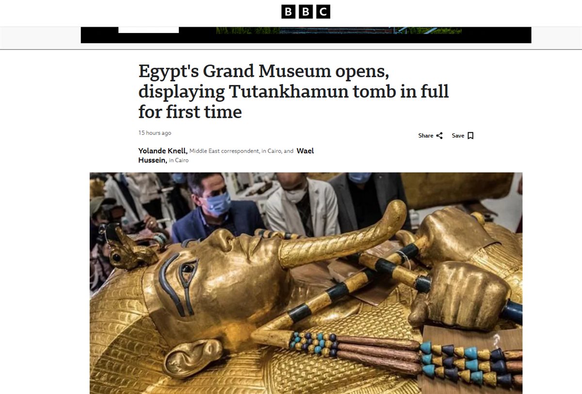 بي بي سي: افتتاح المتحف المصري الكبير وعرض مقبرة توت عنخ آمون كاملة لأول مرة
