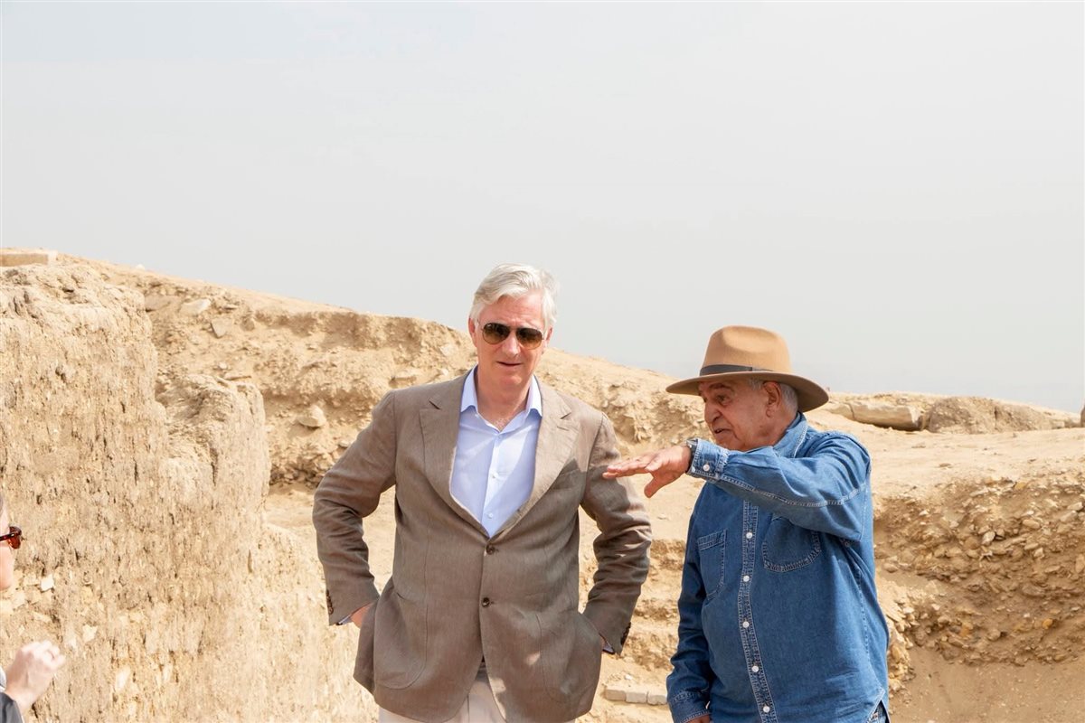 ورافَق الدكتور زاهي حواس الملك فيليب في جولة تفصيلية داخل موقع الحفائر، حيث قدم شرحًا وافيًا لأبرز الإكتشافات الهامة التي أنجزتها البعثة، وجاء ذلك بحضور السفير بارت دي غروف، سفير بلجيكا لدى مصر ووفد رفيع المستوي.