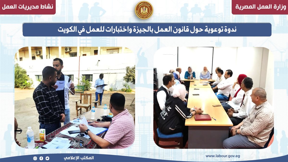 ندوة توعوية حول قانون العمل بالجيزة واختبارات للعمل في الكويت