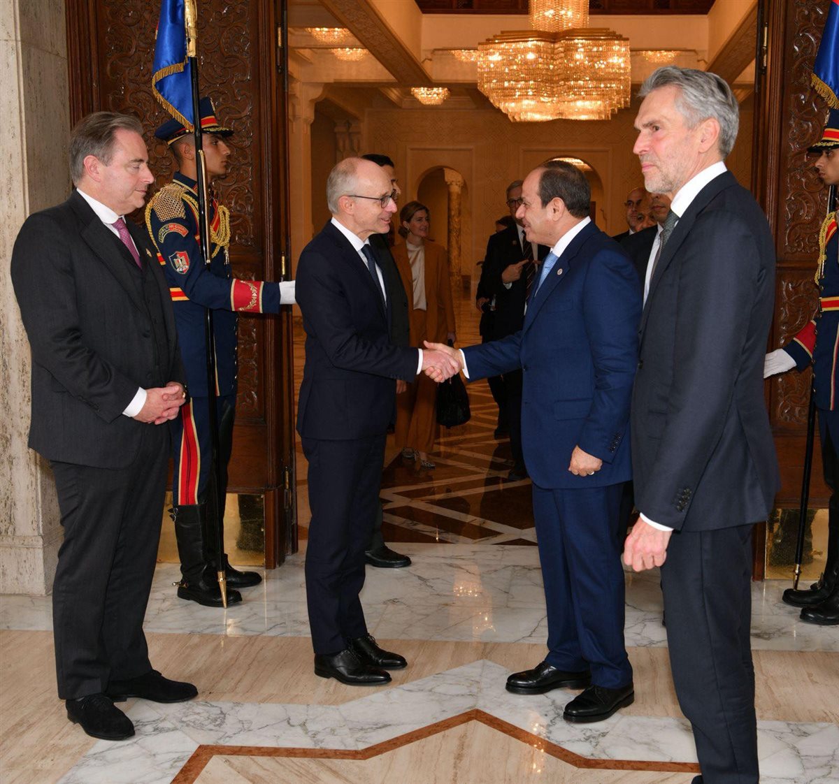استقبل الرئيس عبد الفتاح السيسي، امس، كلا من لوك فريدن رئيس وزراء دوقية لوكسمبورج، و ديك سخوف رئيس وزراء مملكة هولندا، و بارت دي فيفر رئيس وزراء مملكة بلجيكا، وذلك بحضور الدكتور بدر عبد العاطي وزير الخارجية والهجرة وشئون المصريين في الخارج، ومن جانب لوكسمبورج كريستيان مولر سفير دوقية لوكسمبورج في القاهرة، ومن الجانب الهولندي بيتر موليما سفير مملكة هولندا بالقاهرة، وهيلين ستيرجيو مستشار الشئون الخارجية ومنسق الدفاع، ومن الجانب البلجيكي جيرون بيتورز، مسئول الشئون السياسية بسفارة مملكة بلجيكا بالقاهرة.