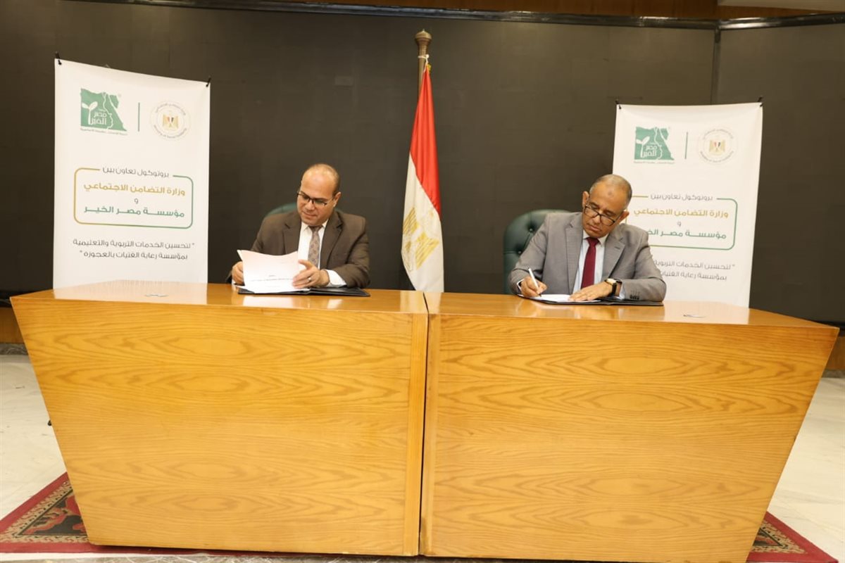 وقع البروتوكول عن الطرف الأول الدكتور وائل أحمد عبد العزيز، رئيس الإدارة المركزية للرعاية الاجتماعية بوزارة التضامن الاجتماعي، وعن الطرف الثاني الدكتور صابر حسن، رئيس قطاع التعليم بمؤسسة مصر الخير، وذلك بحضور الأستاذ حسين إسماعيل، مدير عام الإدارة العامة للدفاع الاجتماعي بالوزارة، وعدد من قيادات العمل بمؤسسة مصر الخير.