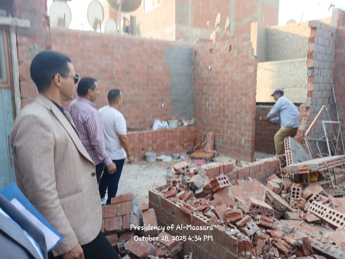كما أشار التقرير إلى قيام وفد الوزارة بالقيام بجولة ميدانية في بعض المناطق في الأحياء المستهدفة حيث تم متابعة تنفيذ إزالة فورية لمخالفة بناء متغير مكانى غير قانوني بأحد العقارات بحي المعصرة ، كما تم تنفيذ إزالة فورية لمخالفة بناء على أملاك الدولة بمساكن العبد ( التعاونيات) بحي المقطم ، وكذا تنفيذ إزالة في المهد بالحي الثالث الهضبة الوسطى بالمقطم ، وتنفيذ إزالة فورية بحي البساتين لمخالفة بناء.. وتم اتخاذ الإجراءات القانونية تجاه المخالفات التي تم رصدها.