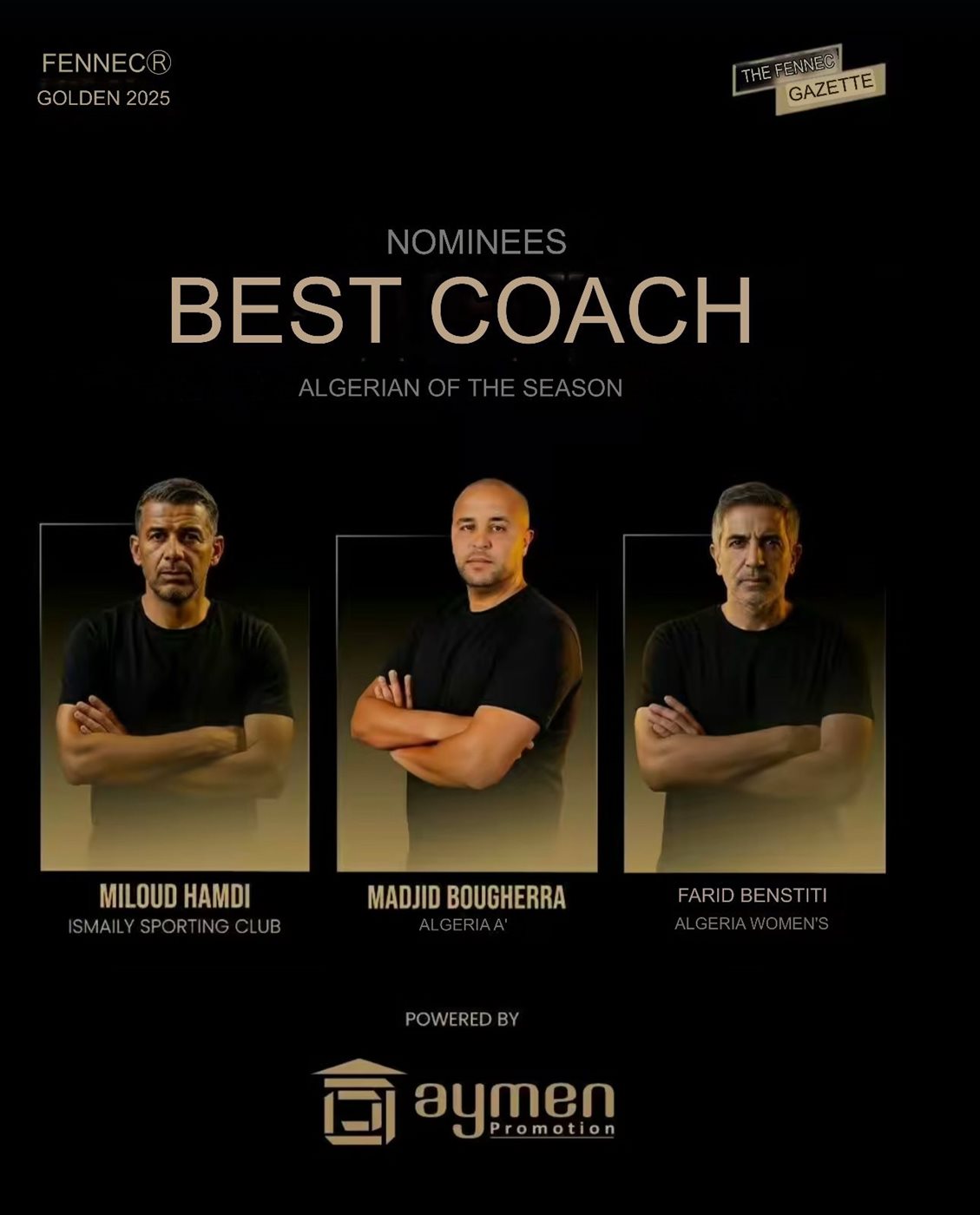 ويتواجد في القائمة النهائية لجوائز أفضل مدرب جزائري في إفريقيا كلا من ميلود حمدي مدرب الإسماعيلي، ومجيد بوقرة مدرب منتخب الجزائر للشباب، وفريد بن ستيتي مدرب منتخب الجزائر للسيدات.