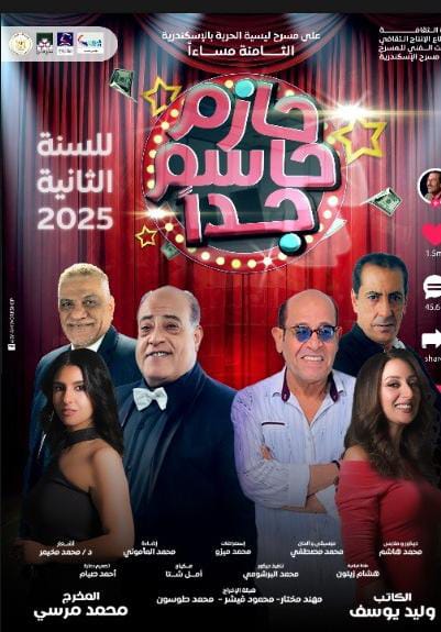 وتقدّم فرقة مسرح الإسكندرية بقيادة المخرج محمد مرسي العرض المسرحي "حازم حاسم جدًا"، وذلك ضمن خطة التجوال والمواجهة بالتعاون مع فرقة المواجهة والتجوال برئاسة المخرج محمد الشرقاوي، حيث تُقام العروض بالمجان في عدد من محافظات الوجه البحري.