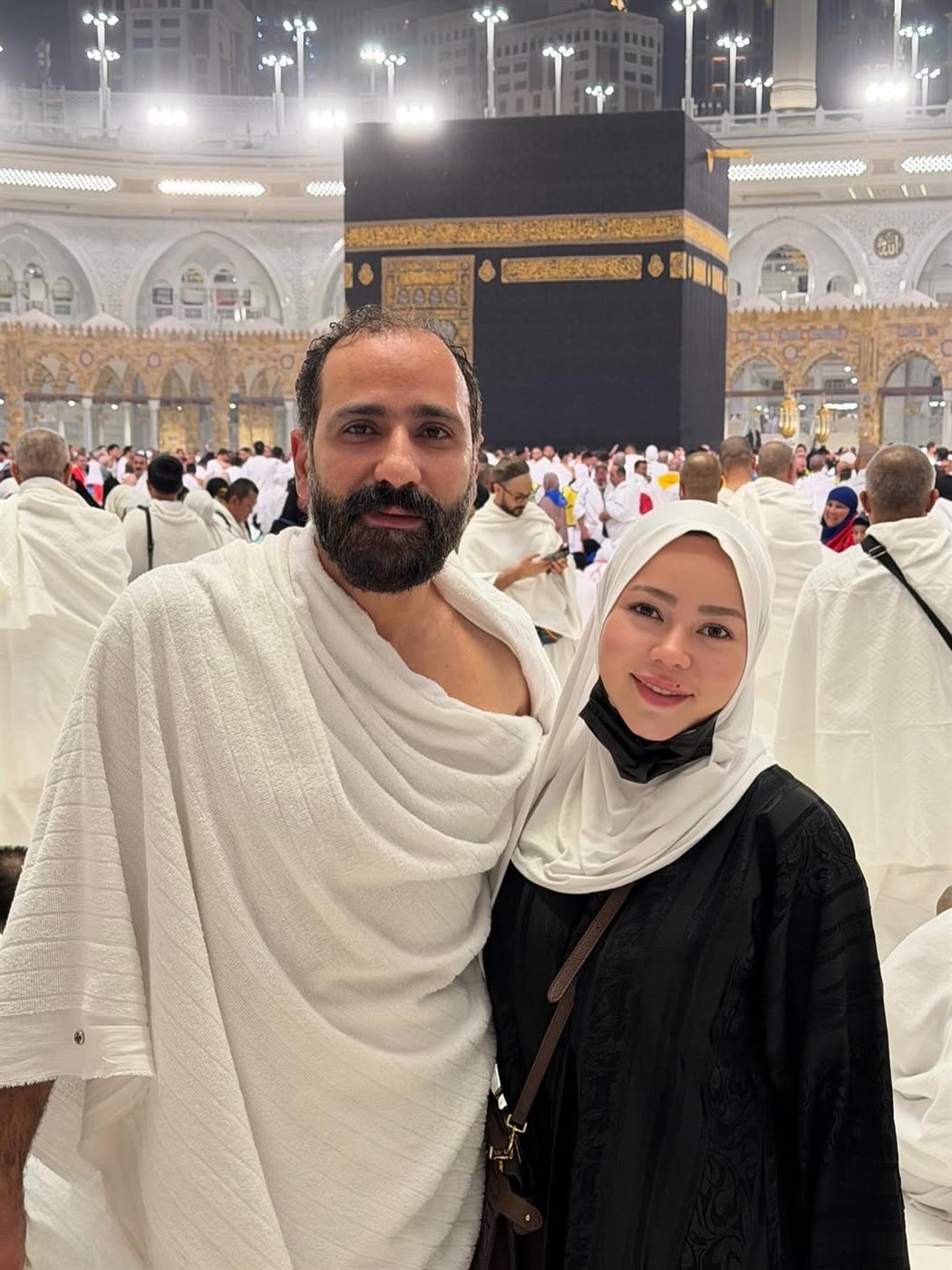 محمد الخشن وزوجته الإعلامية أسما إبراهيم يؤديان مناسك العمرة