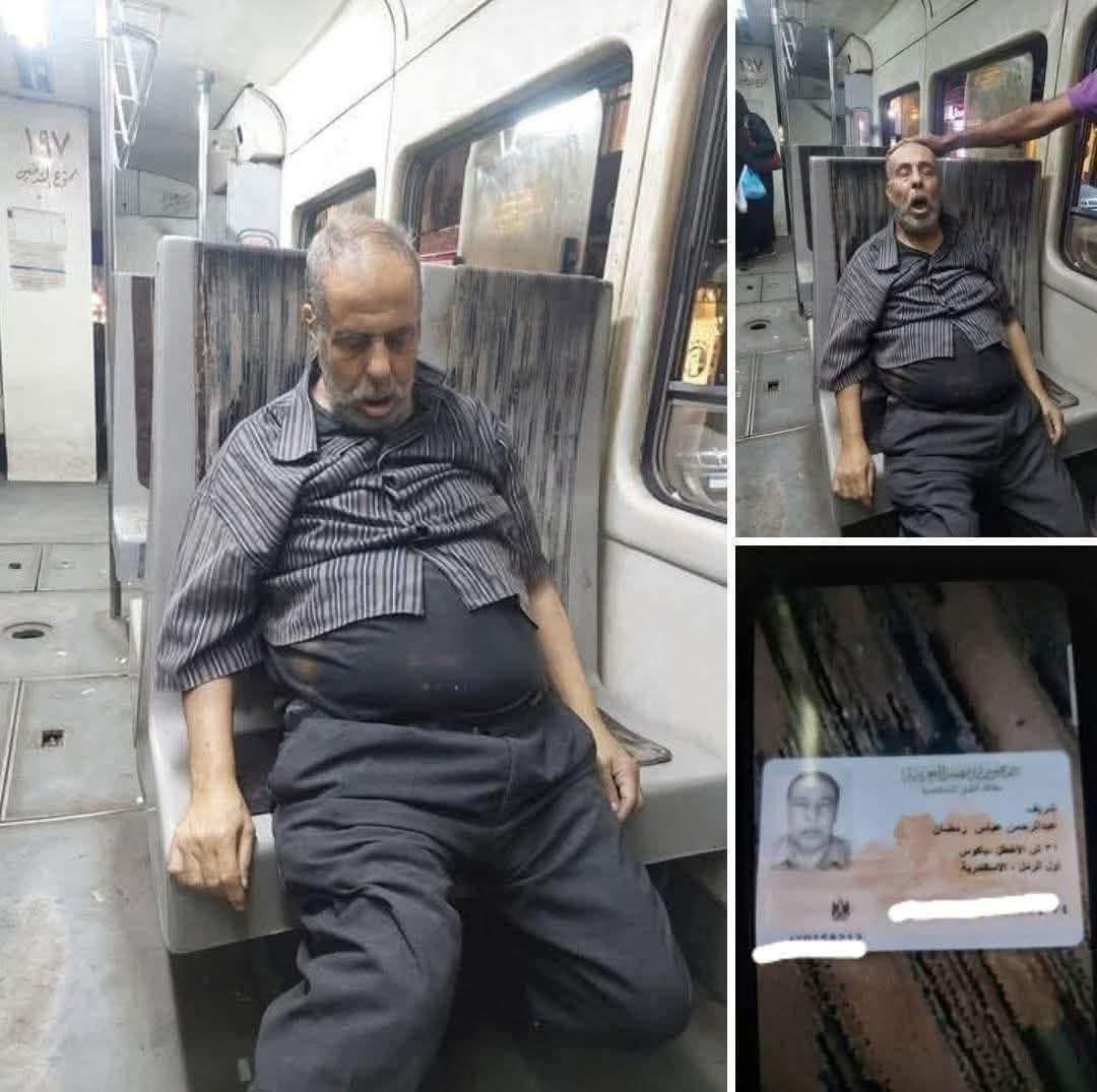 وتظهر الصور المتداولة بطاقة الرجل بجانب صورته داخل الترام ويدعى شريف عبدالرحمن رمضان من منطقة باكوس بحي شرق، وسط مناشدات لمن يتعرف عليه و تسلم جثمانه و دعوات له بالرحمه بعد أن تداولت منشورات أخري وفاته.