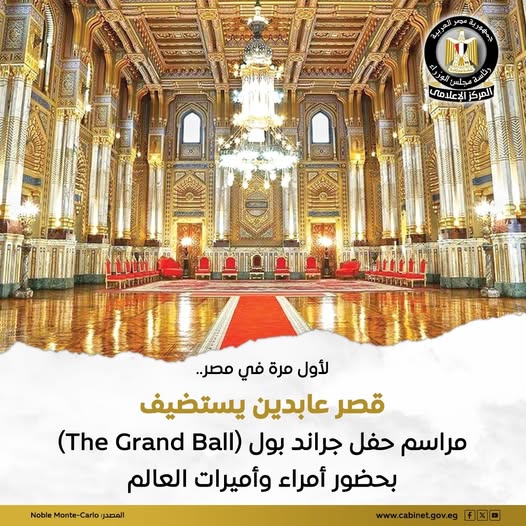 بحضور رفيع المستوى يضم أمراء وأميرات ووجوهًا من الأسر النبيلة حول العالم.. يستعد قصر عابدين التاريخي لاستضافة حفل ذا جراند بول (The Grand Ball) للمرة الأولى في مصر. يقام الحدث بتنظيم Noble Monte-Carlo ليجمع بين الأناقة والفخامة والتاريخ العريق في قلب القاهرة، ليضع مصر على خريطة أشهر الاحتفالات الأرستقراطية الدولية، مؤكّدًا مكانتها كوجهة عالمية للثقافة والفن والتراث، ولتصبح ثاني دولة عربية تستضيف هذا المحفل الفريد.