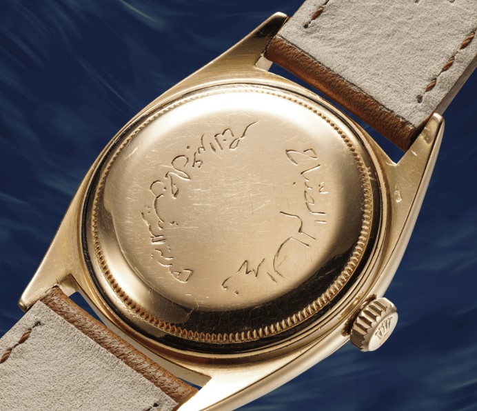 وتعتبر تلك من النوع رولكس، وهي ساعة تروي قصة رجال عظماء من عصور غابرة، فهي ساعة داي-ديت أسطورية نادرة وجذابة للغاية مصنوعة من الذهب الوردي؛ وهي من أقدم ساعات هذه السلسلة على الإطلاق، حيث صُنعت عام 1956، كما يتضح من الرقم التسلسلي 134660 ولكن، عند قلب الساعة، سيكشف ظهرها عن نقش يجعل من الساعة قطعة أثرية تاريخية، ويُترجم هذا النقش باللغة العربية إلى "هدية إلى الرئيس جمال عبد الناصر، فهد السالم الصباح".
