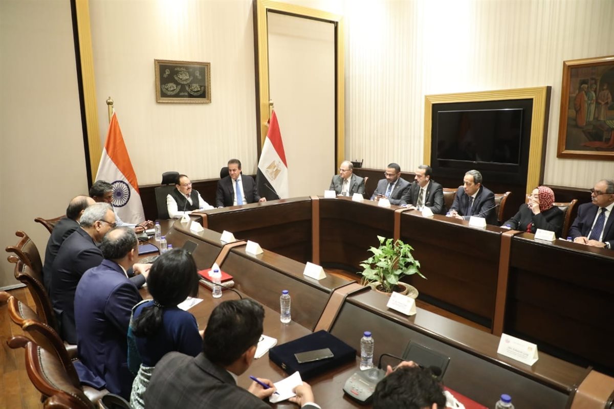 استقبل الدكتور خالد عبدالغفار، نائب رئيس مجلس الوزراء ووزير الصحة والسكان، نظيره الهندي السيد جاجات براكاش نادا، وزير الصحة والكيماويات والأسمدة، لتعزيز التعاون في مجالات الرعاية الصحية، وعلى رأسها تبادل الخبرات في صناعة الأدوية واكتشاف فرص الاستثمار المشتركة بين البلدين.