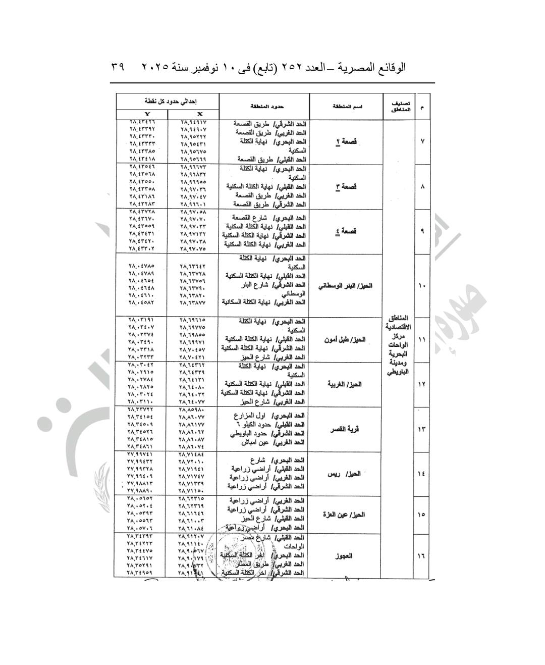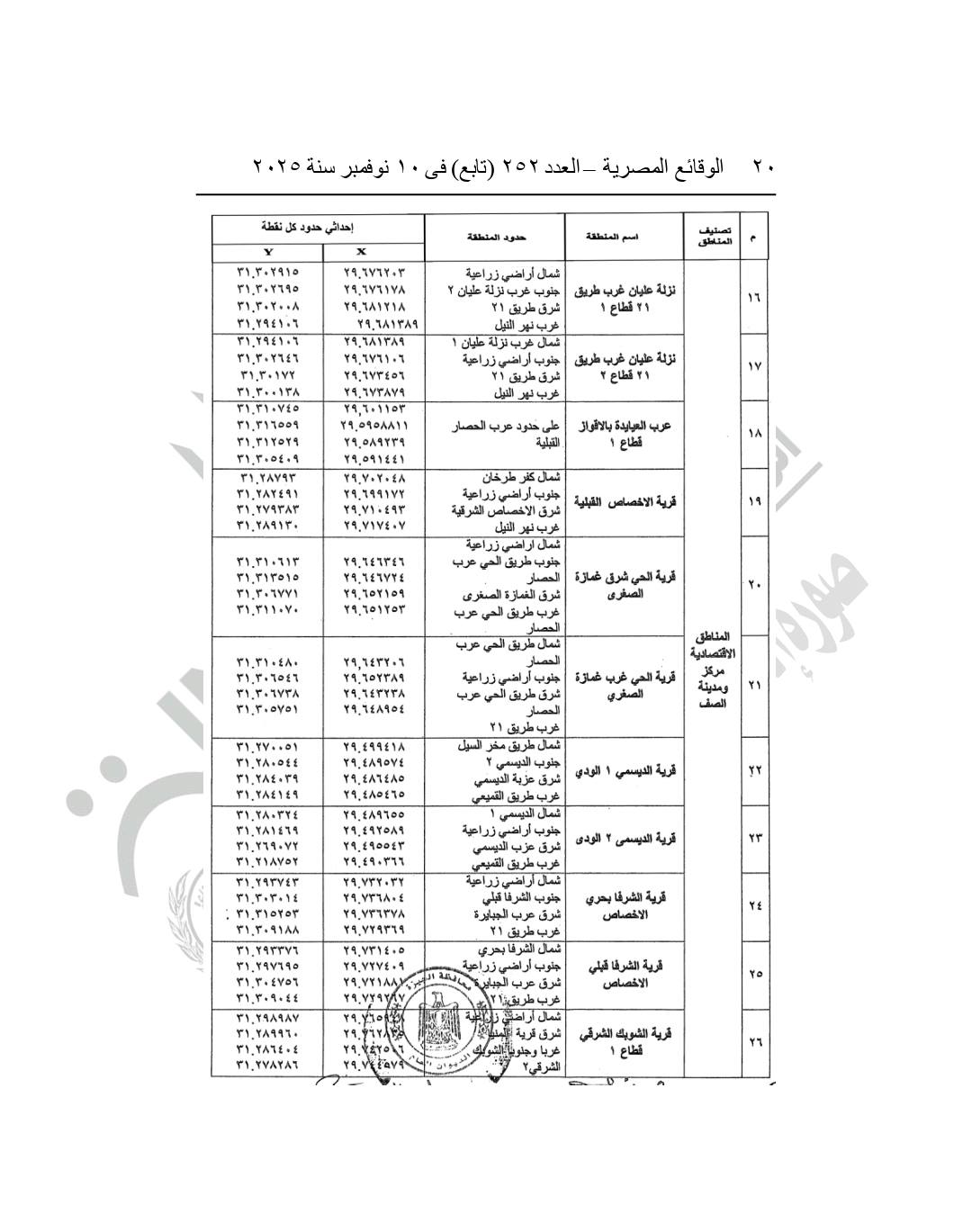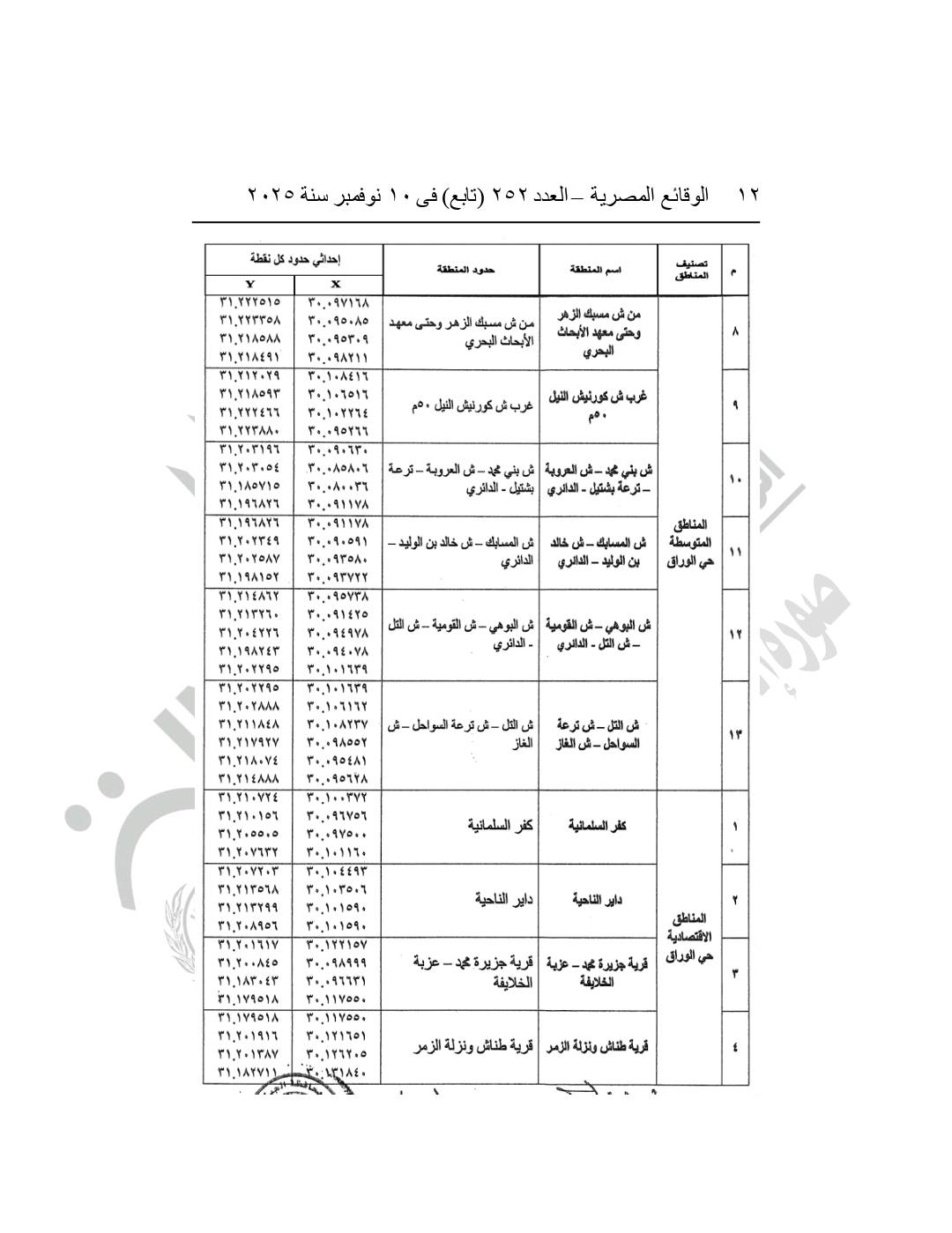 كما شملت المعايير، تقييم شبكة الطرق ووسائل المواصلات، وتوافر الخدمات الصحية والاجتماعية والتعليمية، إلى جانب مراعاة القيمة الإيجارية السنوية للعقارات الخاضعة لقانون الضريبة على العقارات المبنية رقم 196 لسنة 2008، داخل نفس المنطقة.