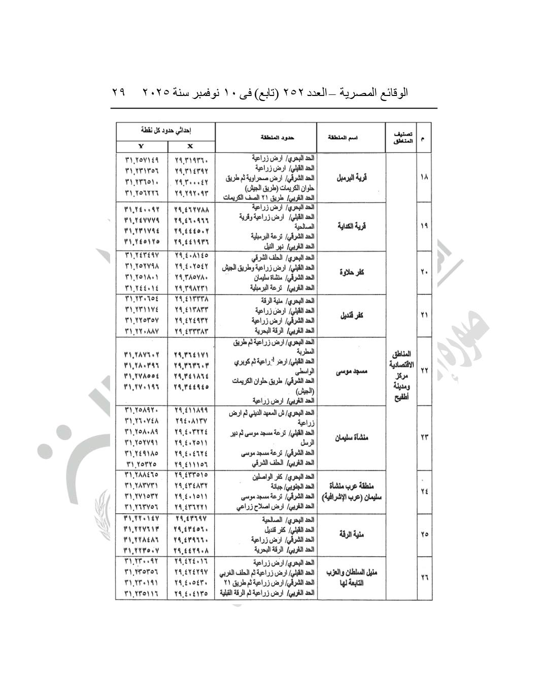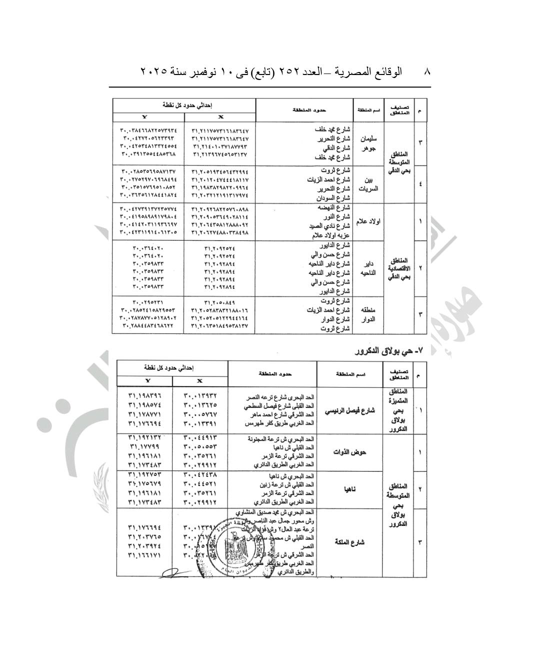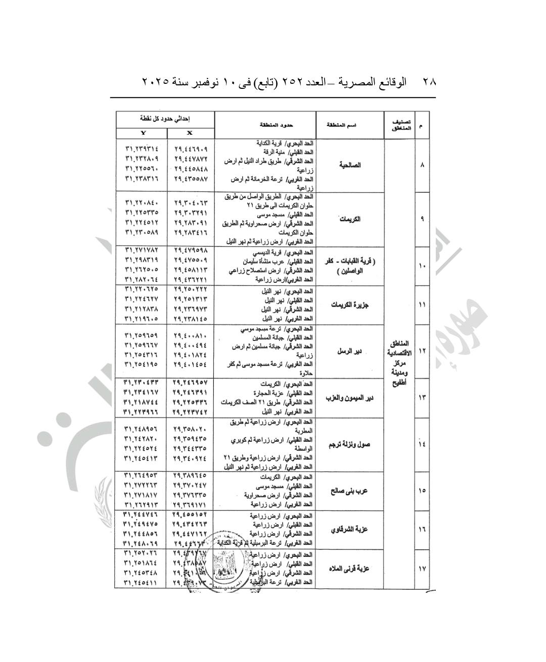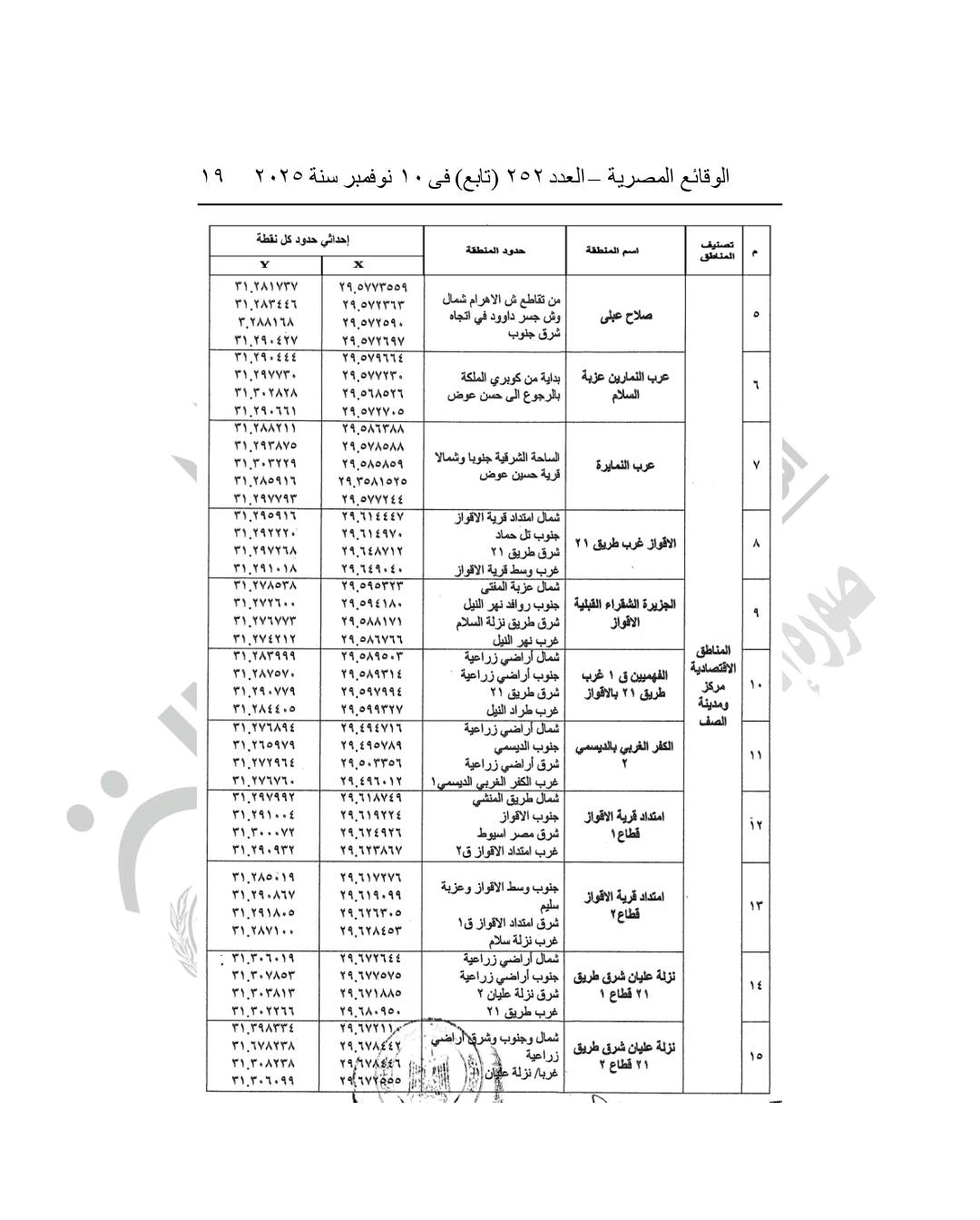 كما شملت المعايير، تقييم شبكة الطرق ووسائل المواصلات، وتوافر الخدمات الصحية والاجتماعية والتعليمية، إلى جانب مراعاة القيمة الإيجارية السنوية للعقارات الخاضعة لقانون الضريبة على العقارات المبنية رقم 196 لسنة 2008، داخل نفس المنطقة.