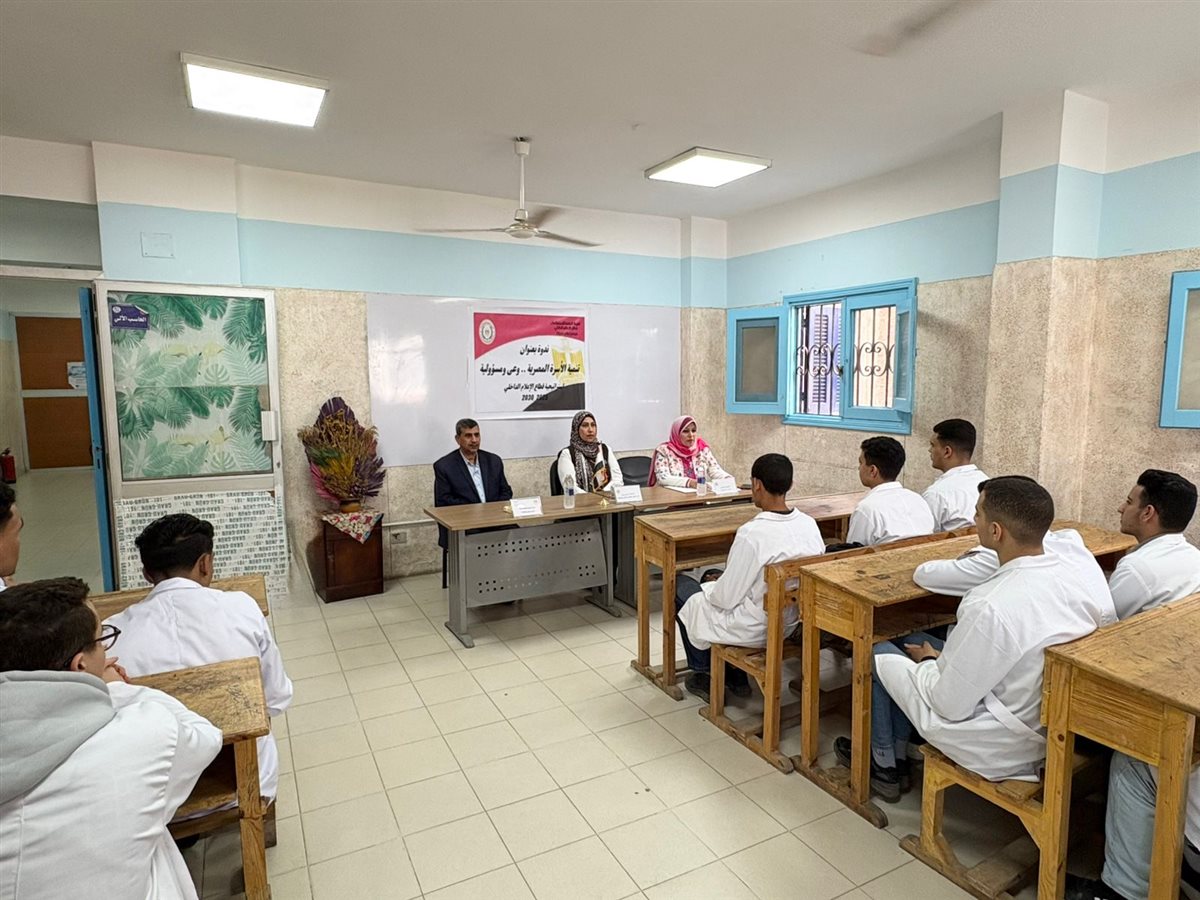 كما أوضحت الدكتورة غادة الشربيني مدير مدرسة سعد الثانوية الفنية للتمريض أن الوعي الأسري هو الخطوة الأولى لبناء مجتمع صحي وسليم، مؤكدة أن تنمية الأسرة تبدأ من نشر المعرفة الصحيحة بين الشباب وتعزيز القيم الإيجابية داخل البيوت والمدارس، لأن الأسرة الواعية قادرة على إنتاج جيل قوي واعي بحقوقه وواجباته تجاه وطنه.