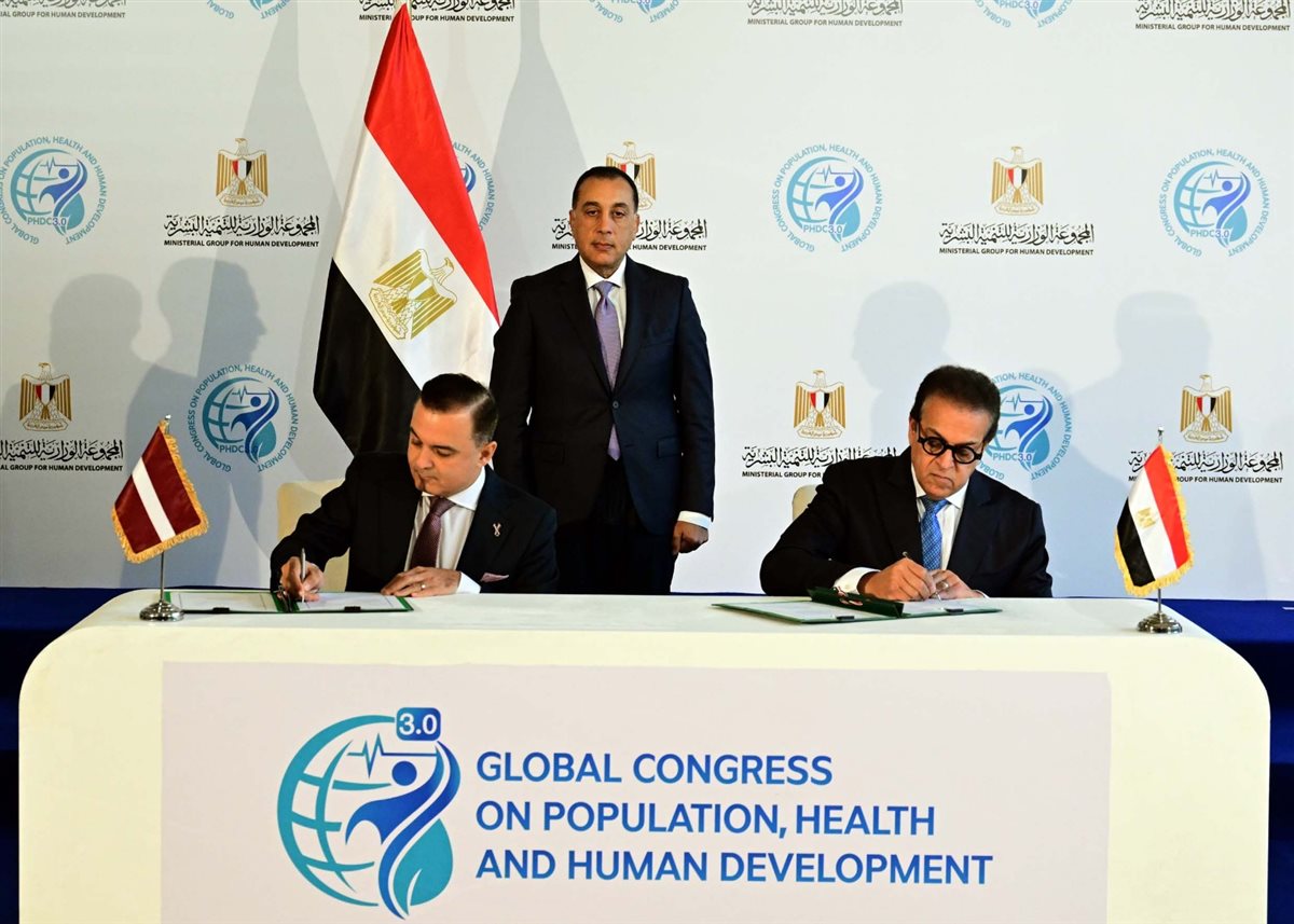 شهد الدكتور مصطفى مدبولي، رئيس مجلس الوزراء، اليوم؛ مراسم توقيع مذكرة تفاهم للتعاون في مختلف مجالات الرعاية الصحية بين وزارة الصحة والسكان بجمهورية مصر العربية، ووزارة الصحة بجمهورية لاتفيا، وذلك على هامش حضوره فعاليات النسخة الثالثة للمؤتمر العالمي للسكان والصحة والتنمية البشرية (PHDC’25)، الذي يُعقد خلال الفترة من 12 إلى 15 نوفمبر الجاري، بالعاصمة الجديدة، تحت رعاية الرئيس عبد الفتاح السيسي، رئيس الجمهورية.