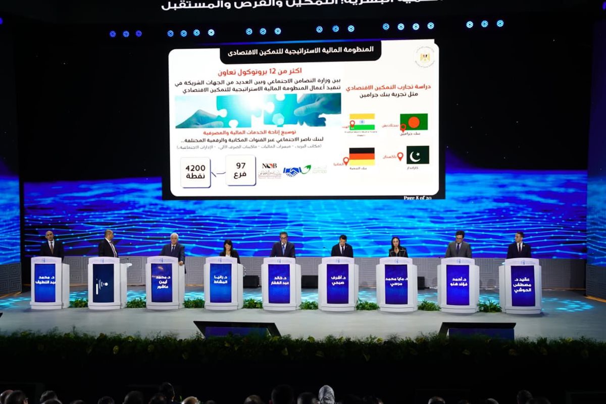 كما نحرص على دعم الطلاب ذوي الإعاقة في الجامعات لضمان تكافؤ الفرص التعليمية من خلال الإتاحة في المناهج أو توفير أجهزة تعويضية وغيرها من الخدمات، كما تم إطلاق المنظومة المالية الاستراتيجية للتمكين الاقتصادي وبناء على التكليفات الرئاسية تم دراسة تجارب التمكين الاقتصادي مثل تجربة جرامين وعدد من التجارب الدولية من الهند وباكستان وألمانيا، وتم خلق هذه المنظومة لتوسيع إتاحة الخدمات المالية والمصرفية لبنك ناصر الاجتماعي عبر القنوات المكانية والرقمية المختلفة بالتعاون مع بنك ناصر، مكاتب البريد، ميسرات الماليات، ماكينات الصراف الآلي، الإدارات الاجتماعية، حيث مستهدف الانتقال من 97 فرعا في بنك ناصر الاجتماعي إلى 4.200 نقطة خدمية مالية، وذلك دون تكلفة على الدولة.
