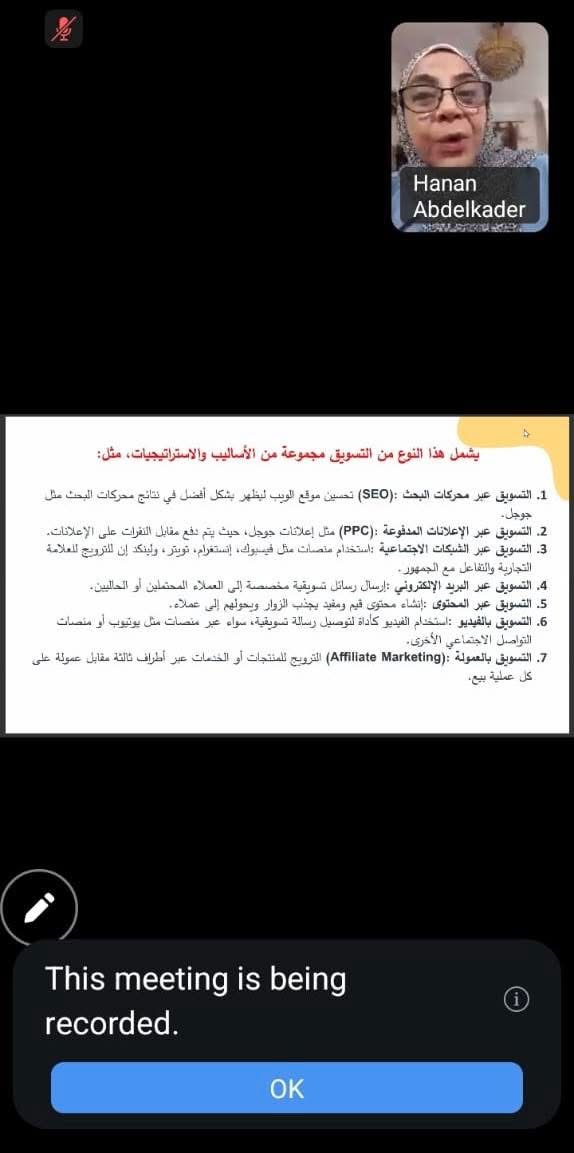 تناول الاجتماع موضوع “التسويق الإلكتروني ودوره في دعم قضايا المرأة”