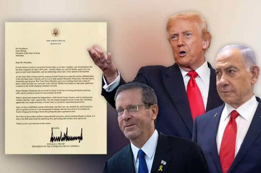 تلقى الرئيس الإسرائيلي إسحاق هرتسوغ رسالة رسمية من الرئيس الأمريكي دونالد ترامب، يطالب بها إلى النظر في منح عفو لرئيس الحكومة الإسرائيلي بنيامين نتنياهو، الذي يواجه محاكمة بتهم تتعلق بالرشوة والاحتيال وخيانة الأمانة.