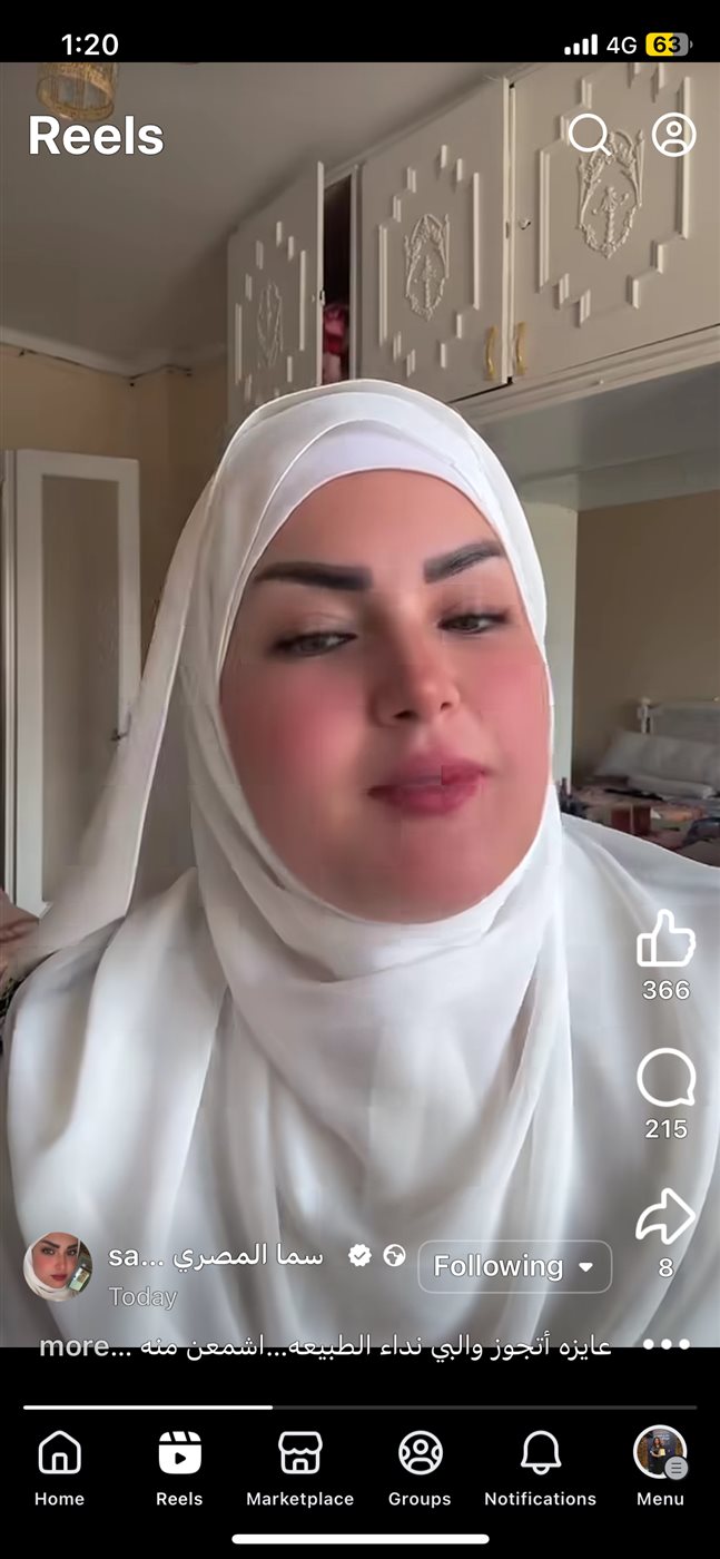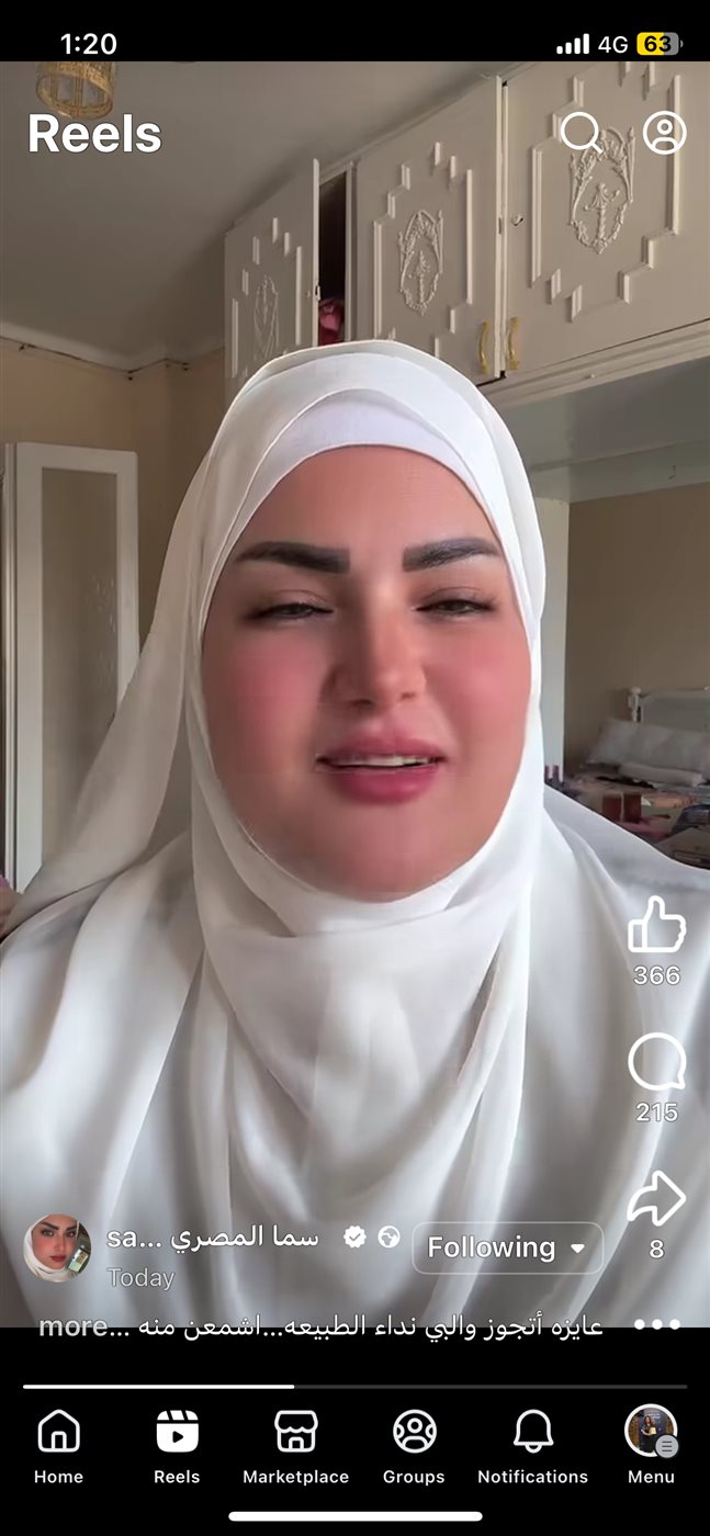 وقالت سما المصري في الفيديو: “دلوقتي كل الناس اتجوزت، إلا أنا قاعدة سينجل صولو، رانيا يوسف اتجوزت، منة شلبي اتجوزت، مي عز الدين اتجوزت، ربنا يارب يسعدهم ويفرحهم ويرزقهم بالذرية الصالحة، أنا بقى عايزة اتجوز عايزة اتستر واقعد في بيت واتلم بقى، الواحد كبر والعمر بيجرب وبلغت من العمر ارذله، يمكن الحق اخلفلي حتة عيل يقرف فيا واقرف فيه يمكن جايز، مافيش خلاص ابقى عايشة في حما راجل، احسن ما انا متشحططة ومتبهدلة كده، عايزة واحد ابن حلال يصوني ويحميني ويستر عرضي ويكون هادي نادي، ادعوا معايا بقى انهاردة يوم الجمعة يوم مفترج، وأنا اتحجبت وبقيت كويسة ولابسة ابيض اهو زي الملاك، ادعولي عشان ادعيلكم لما اتجوز”.